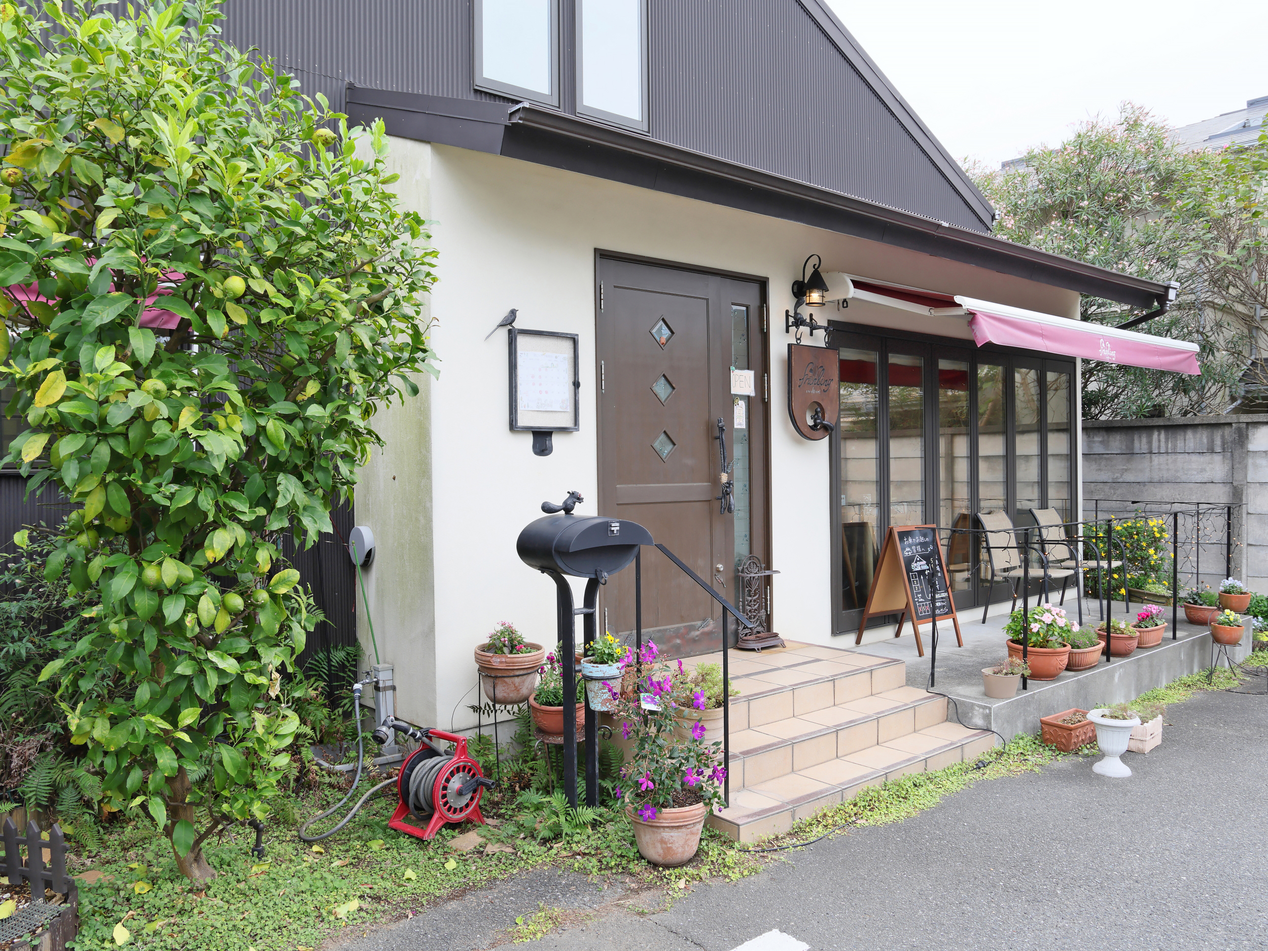 「こんな住宅地に本当にケーキ屋さんが?」と少し不安になりながら進むと、欧風の建物が現れます。洋菓子店「フリューリング」です。