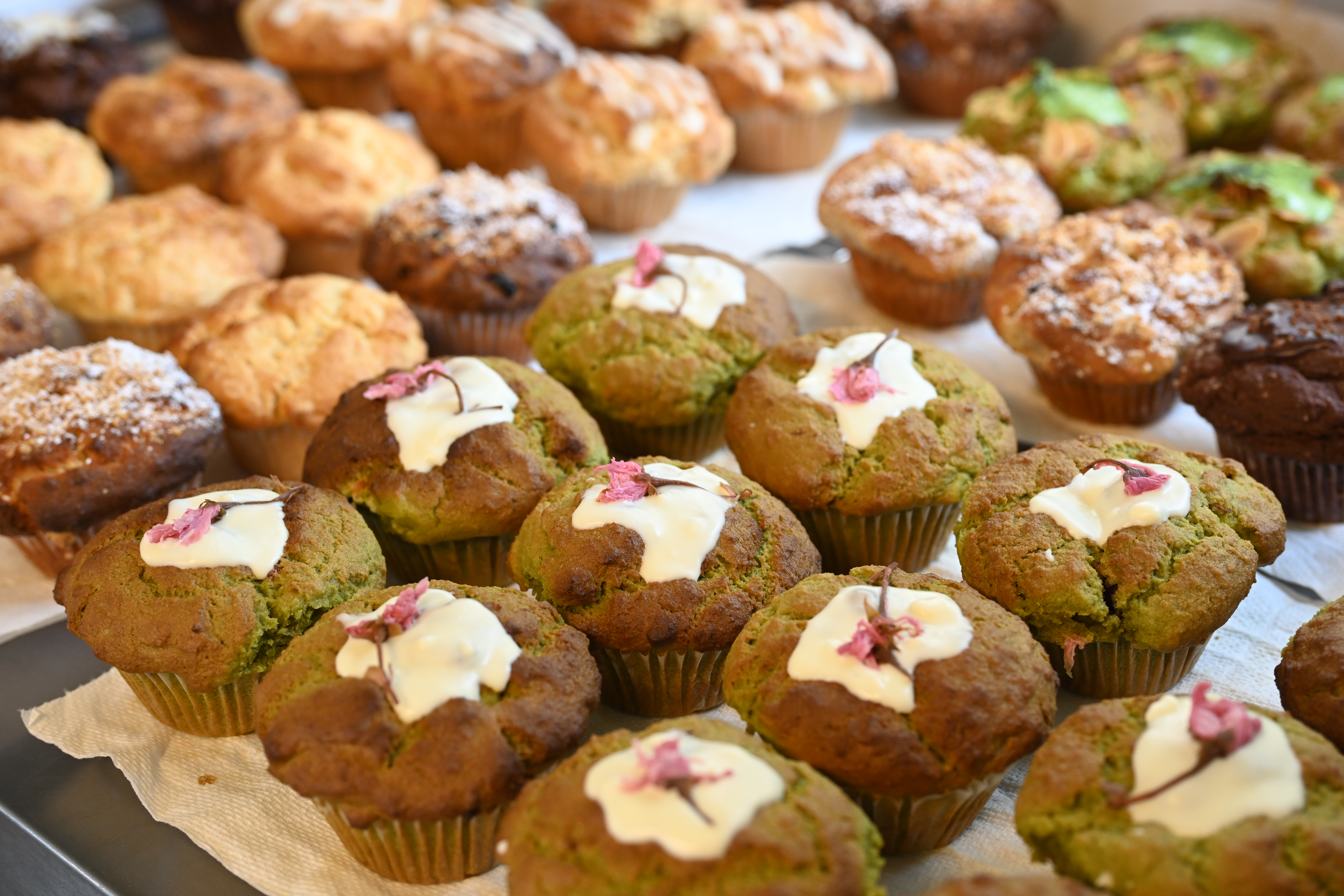 オーナーのフジコさんは沖縄生まれ。幼い頃からのお母さんとのお菓子作りや料理の思い出も、今のマフィン作りの原点となっています。10歳を過ぎた頃に滋賀県へ移住。滋賀では保育士勤めをしながらマフィン作りを続けていました。仕事柄、乳や卵アレルギーの子どもを多く見てきたことも、素材にこだわるきっかけに。「愛情たっぷりのマフィンを、まずは子どもたちに食べさせたい」という気持ちを大切にしています。
