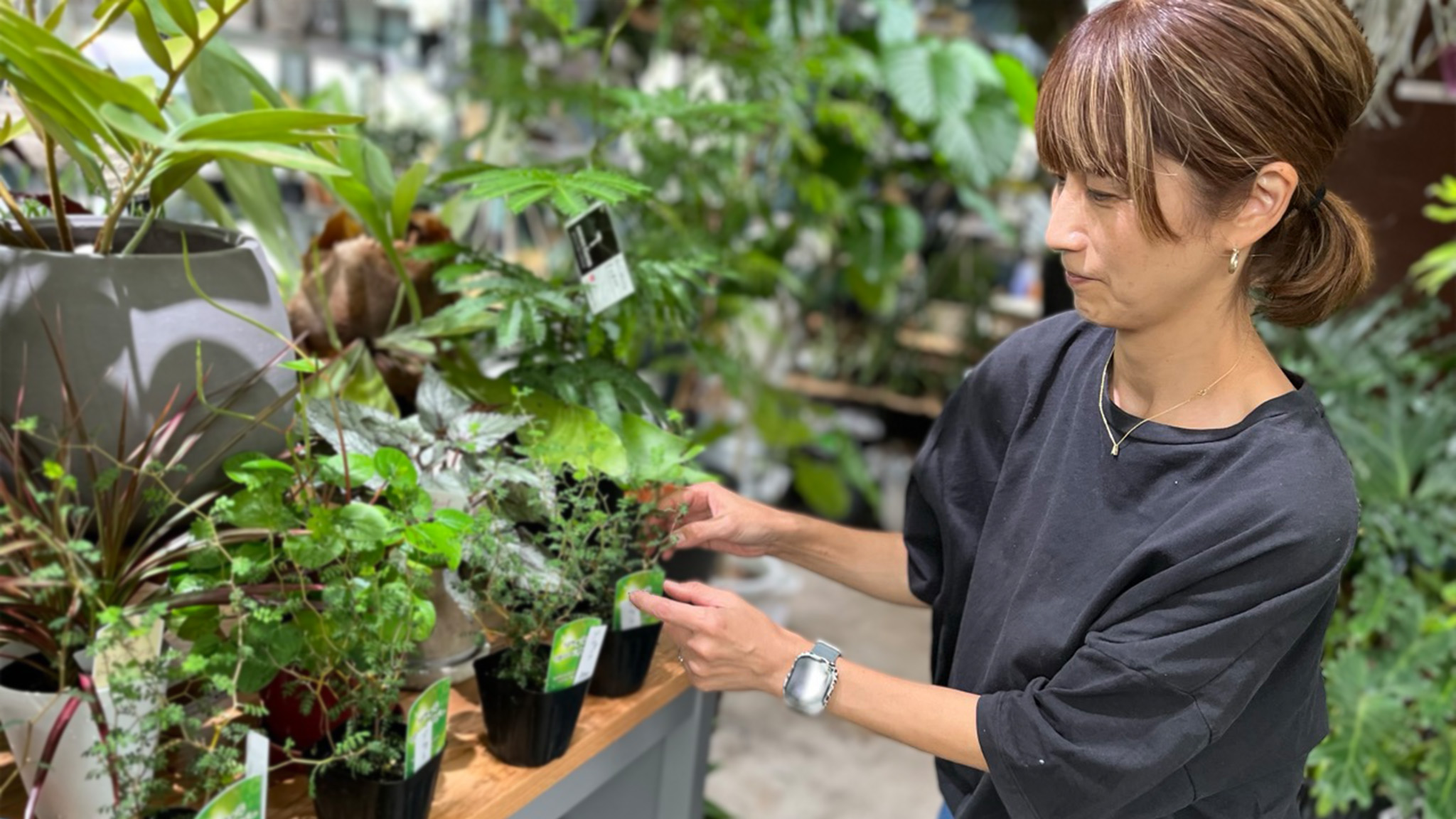 店を営むのは店長の加藤亜紀さんと女性スタッフ。亜紀さんは飲食業界でイタリアンを経験し、バリスタ資格を持つ本格派。夫の加藤浩介さんは建物サービス事業を営む傍ら植物を愛し、亜紀さんと共に観葉植物の生産者や輸入元を訪ねて知識を深めました。