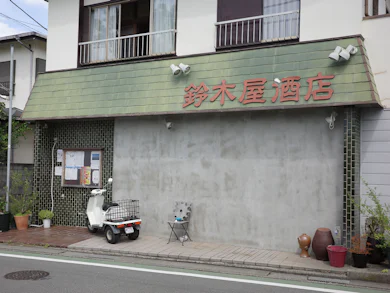 鎌倉で130年以上続く鈴木屋酒店。現在はナチュラルワインの専門店です。塗り潰された壁はワインに最適な湿度を守るためで、入り口は横にあります。