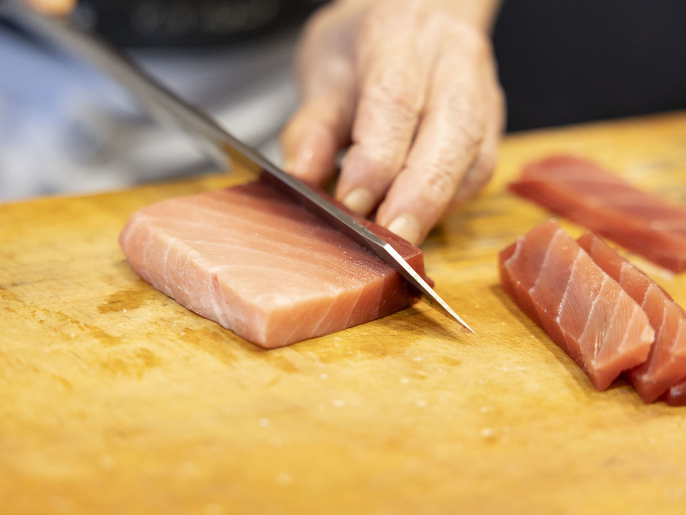 「魚は鮮度も大切ですが、寝かせて熟成させたほうが良い魚もあります。例えばマグロなんかは捕れたてのものは弾力が強すぎてしまう。だから最低でも1~2日は冷蔵庫で寝かせて旨みを引きだします」