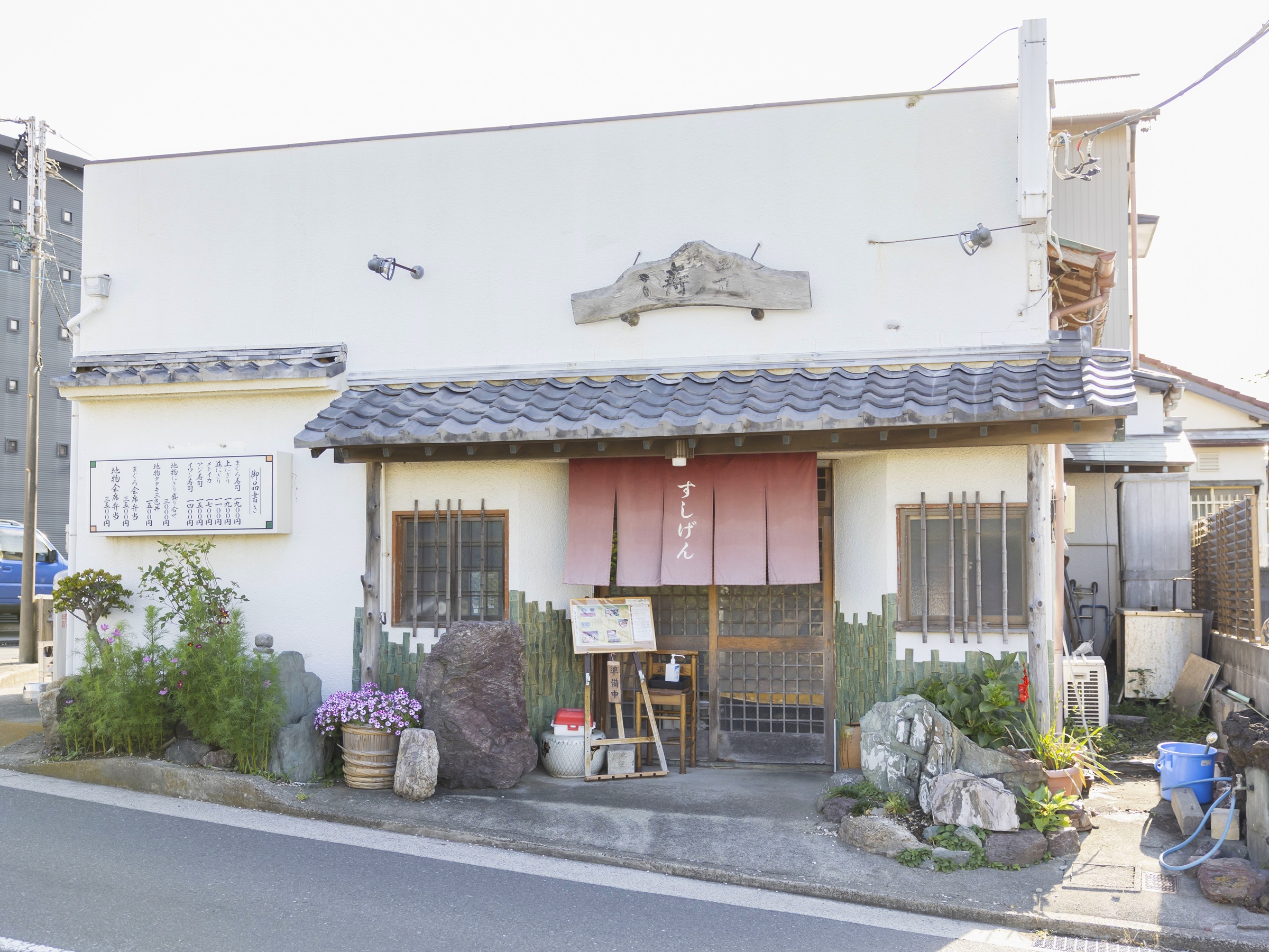 先代は元々「山元」という屋号のマグロ問屋でした。この千社額は、「寿司元」開業時に問屋組合の仲間からお祝いで贈られたもので、三崎の地場産業を支えてきた先代と仲間たちの絆が刻まれています。