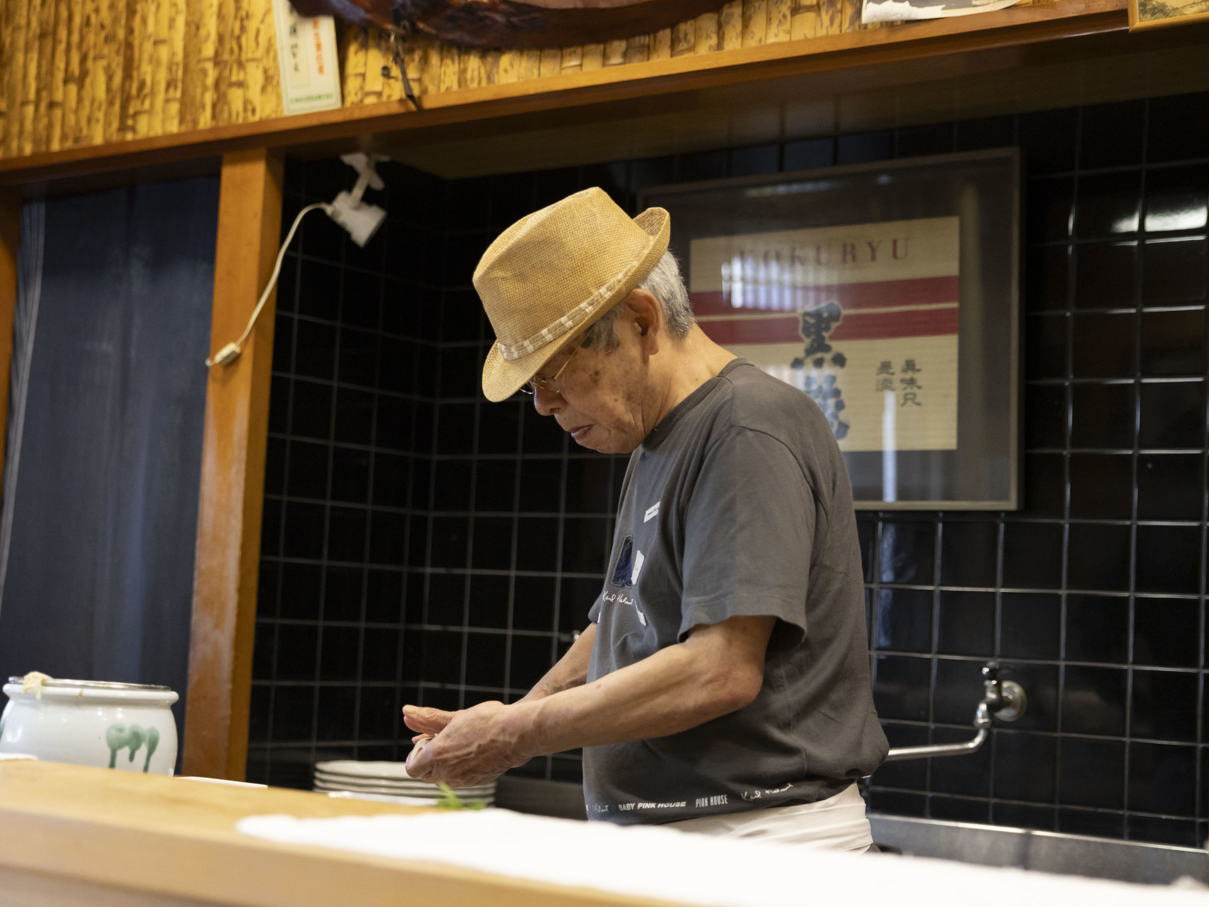 肩の力を抜いたように笑う斉藤さん。趣のある店内には、マグロ問屋「山元」と寿司処「寿司元」の歴史と誇りに、斉藤さんらしさを重ねてきた年月の重みが感じられました。