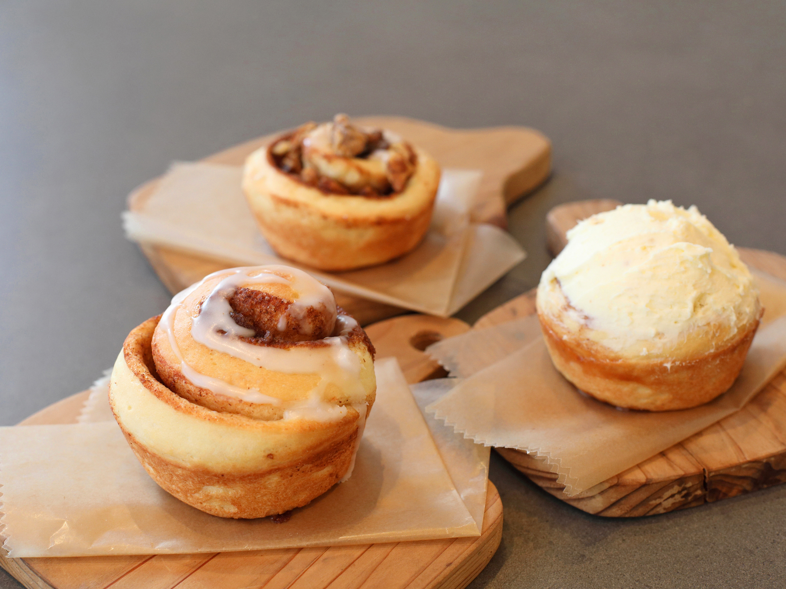 「シナモンロール」(300円~)以外にも、シナモンを使った「アップルパイ」(460円)や、シナモンを効かせたエッグタルト、米粉を使ったグルテンフリーのシナモンケーキもあります。