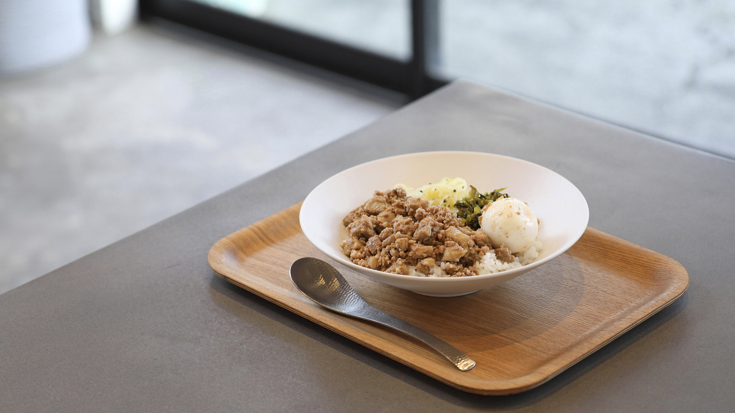 ランチタイム(11:30~15:00)には食事も提供しています。メニューは「ルーロー飯」(800円)と「トマトキーマカレー」(800円)の2種類。今回は「ルーロー飯」をオーダーしました。