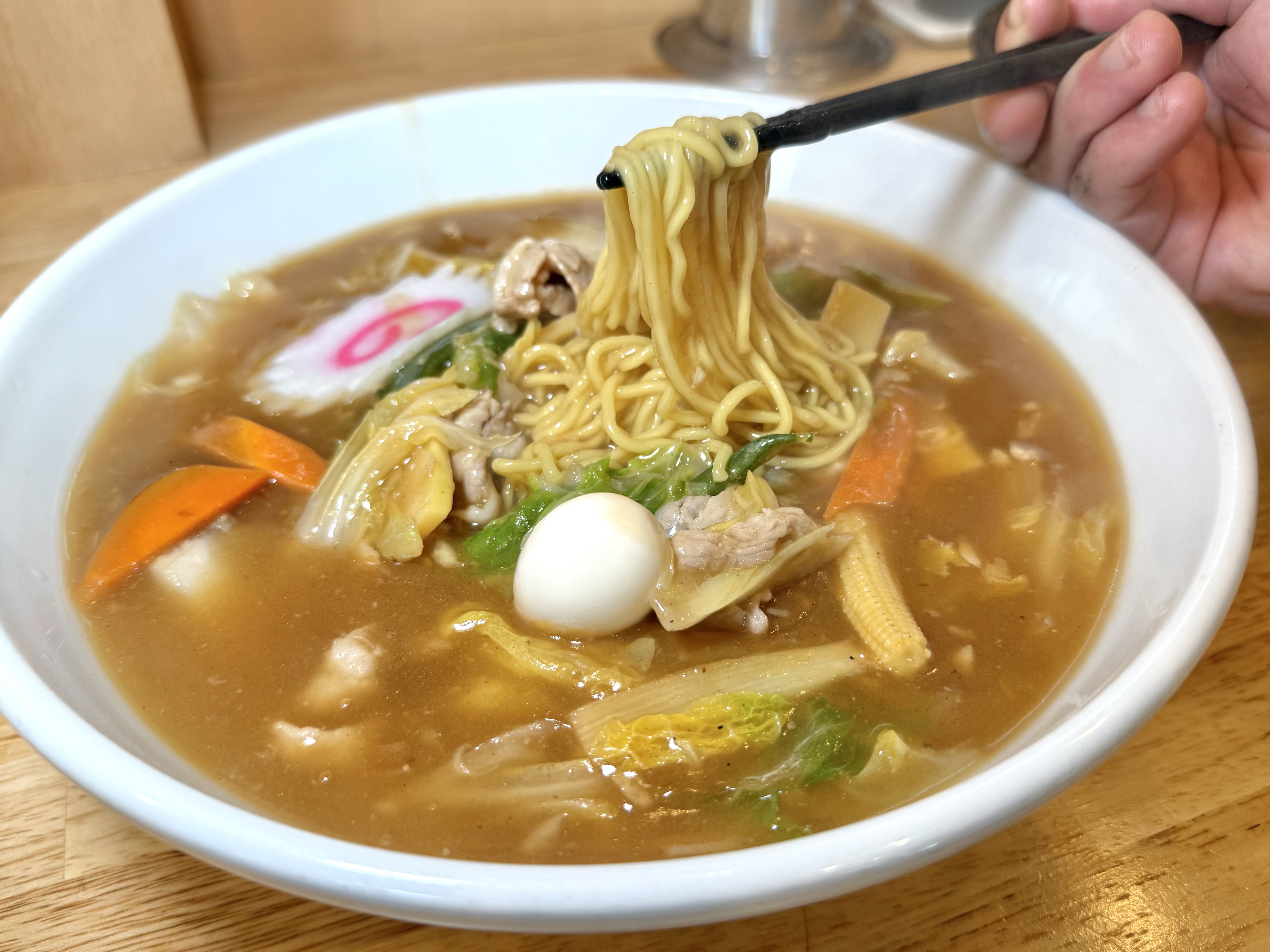 餡にはつるりとしたストレートの細麺。コシがありながらも喉越しが良く、熱々の餡との一体感に感動します。