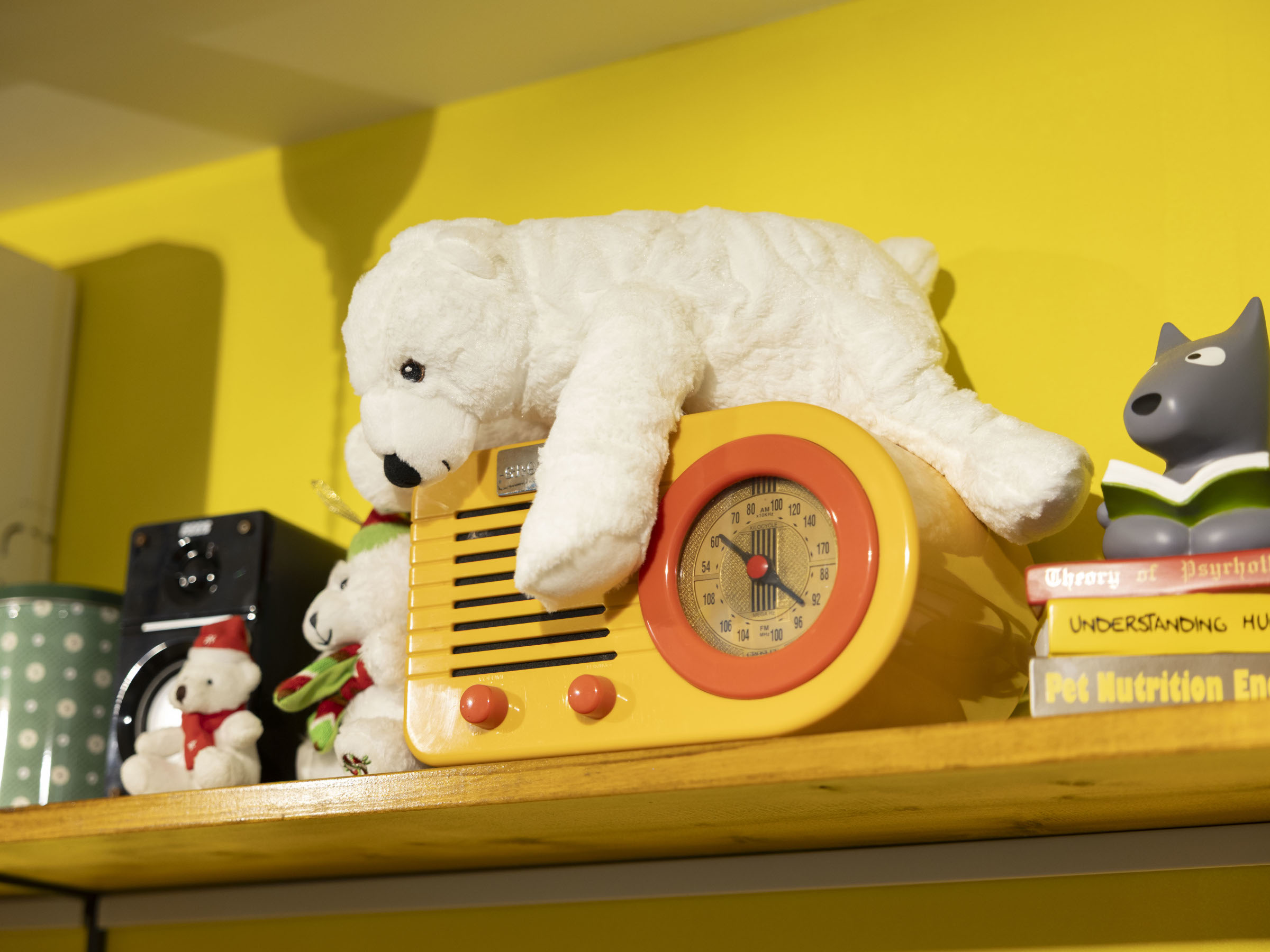 扉を開けると迎えてくれるのは、デッドストックのレゴ人形に、古いコミックのポスター、そして愛嬌たっぷりのオリジナルキャラクターのシロクマ。