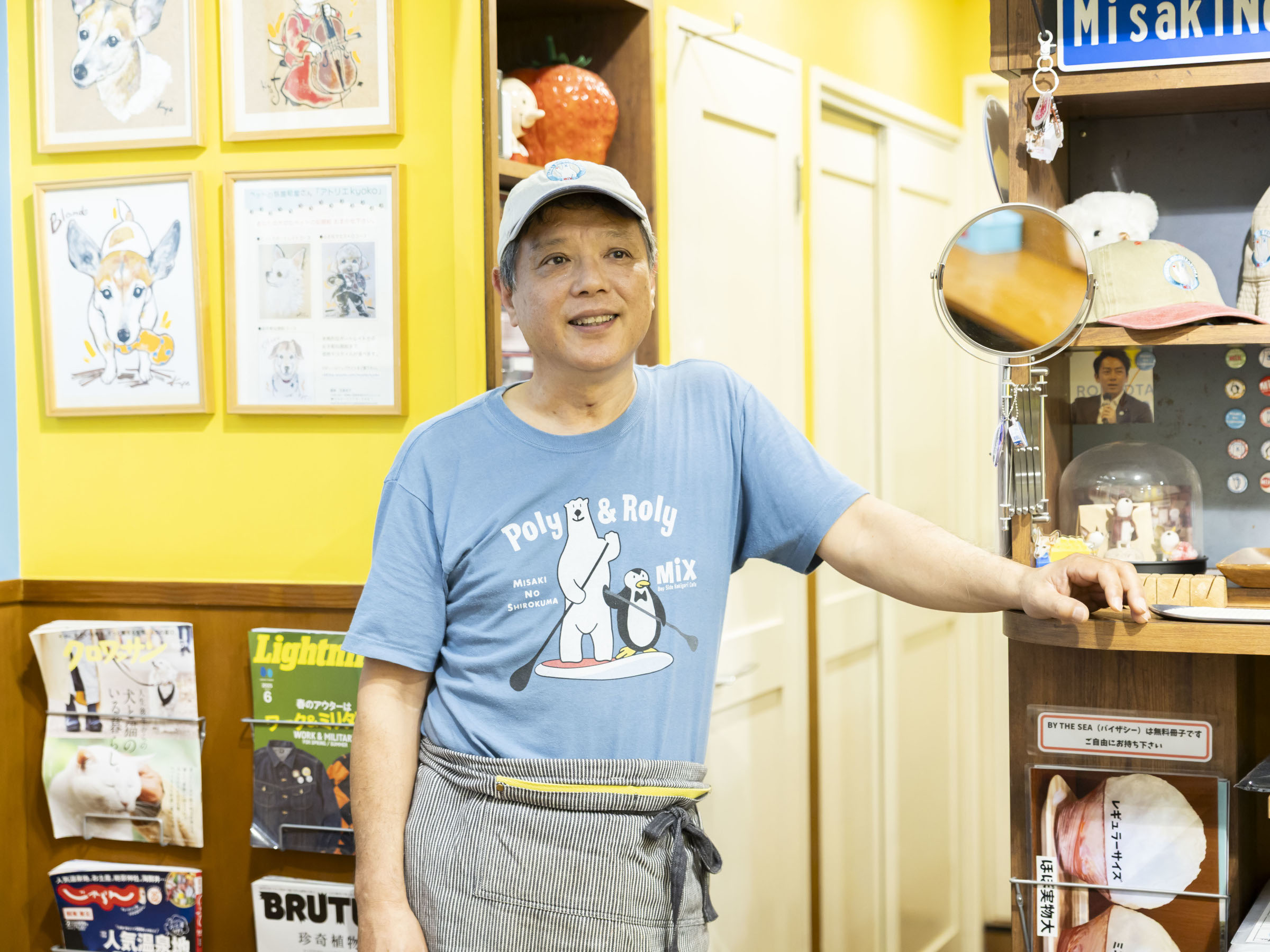 三浦半島の先端、三崎にあるシロクマかき氷の専門店「MiX」。店主の山田智之さんが「アメリカの片田舎でじいちゃん、ばあちゃんが営む小洒落たカフェ」をイメージして設えた店内には、どこか懐かしい1960年代の空気が流れています。
