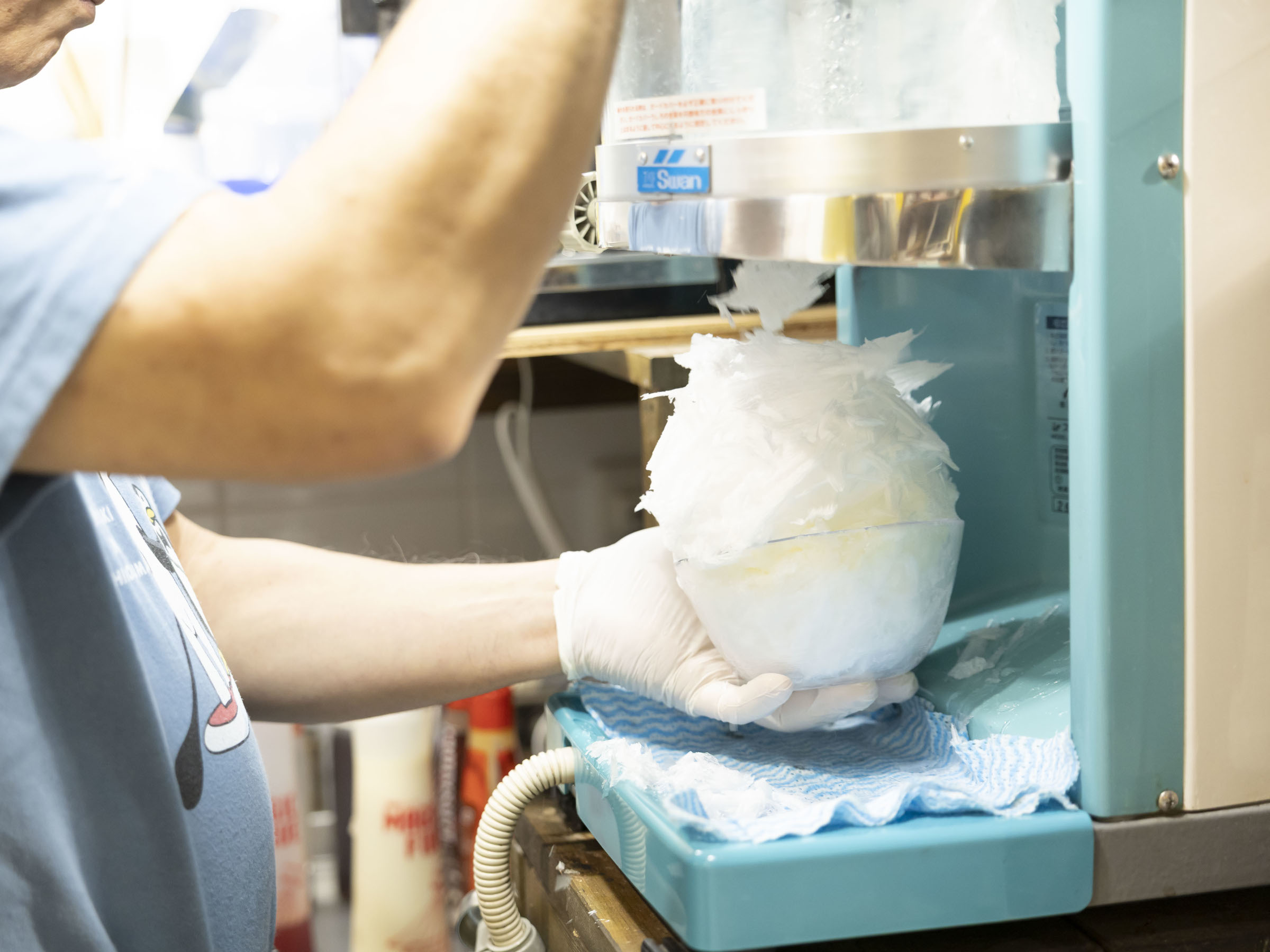 MiXの看板メニューは、シロクマの発祥地・鹿児島天文館で人気を誇った「喫茶ママ」へのリスペクトから生まれた「ミサキのシロクマ」。さっぱりめの特製練乳シロップに、大きくカットされた旬のフルーツが特徴です。地元の方だけでなく、鹿児島出身のお客さまも「もうミサキのシロクマしか食べられない!」と評判の味わいなのだとか。