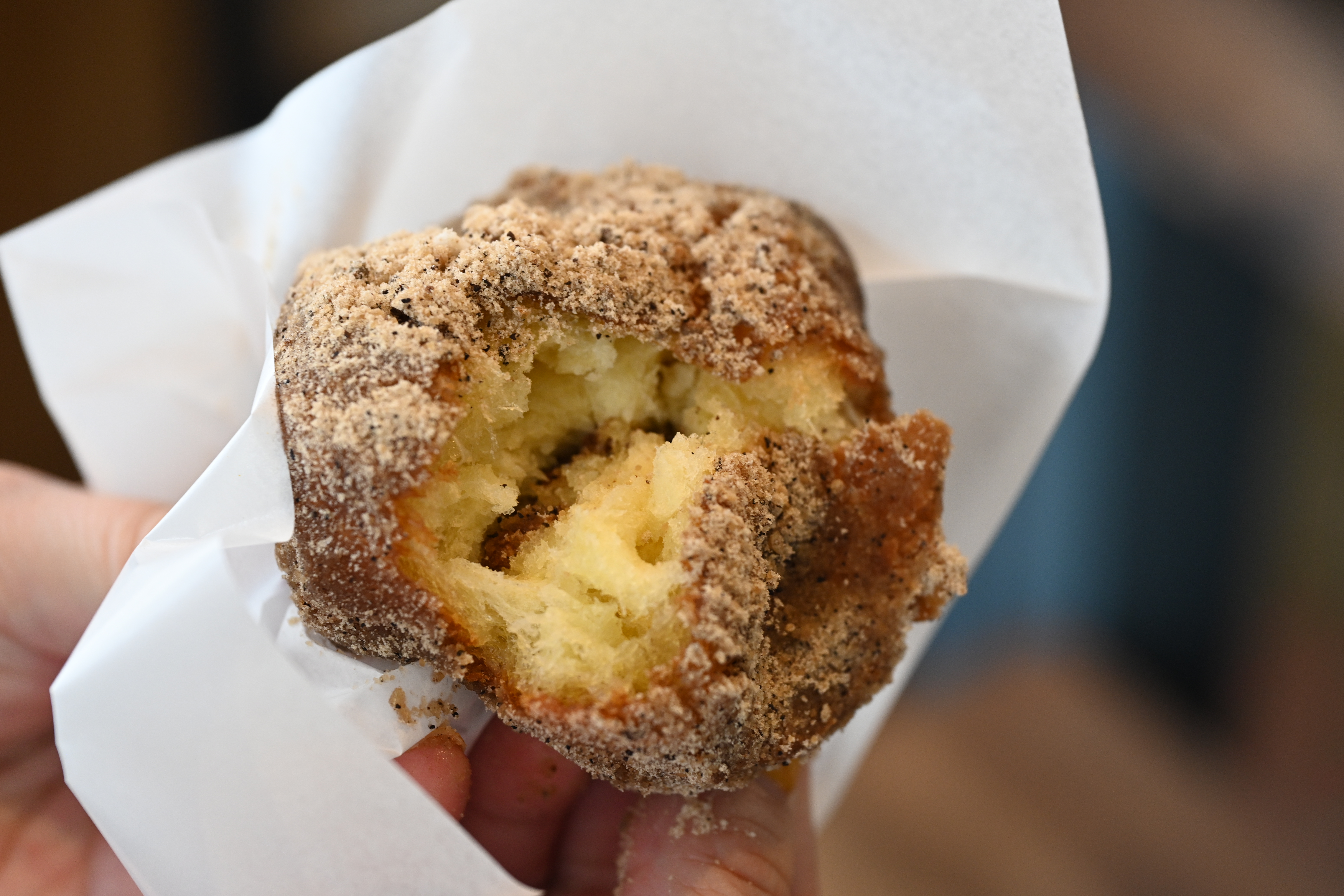 日本ではあまり耳馴染みのない「ベニエ」とは、ニューオリンズ発祥の四角い形が特徴的な揚げドーナツに粉砂糖をまぶしたお菓子のこと。「芦名ベーカリー芦兵衛」のオーナーがアメリカ映画「シェフ」を鑑賞していた際に、白い粉糖がたっぷりかかった袋にたくさん入ったベニエを食べるシーンを見て「いいなぁ」と思ったそう。それをきっかけに、ベニエを看板商品にしたイートインスペースのある店を逗子に構えることに。