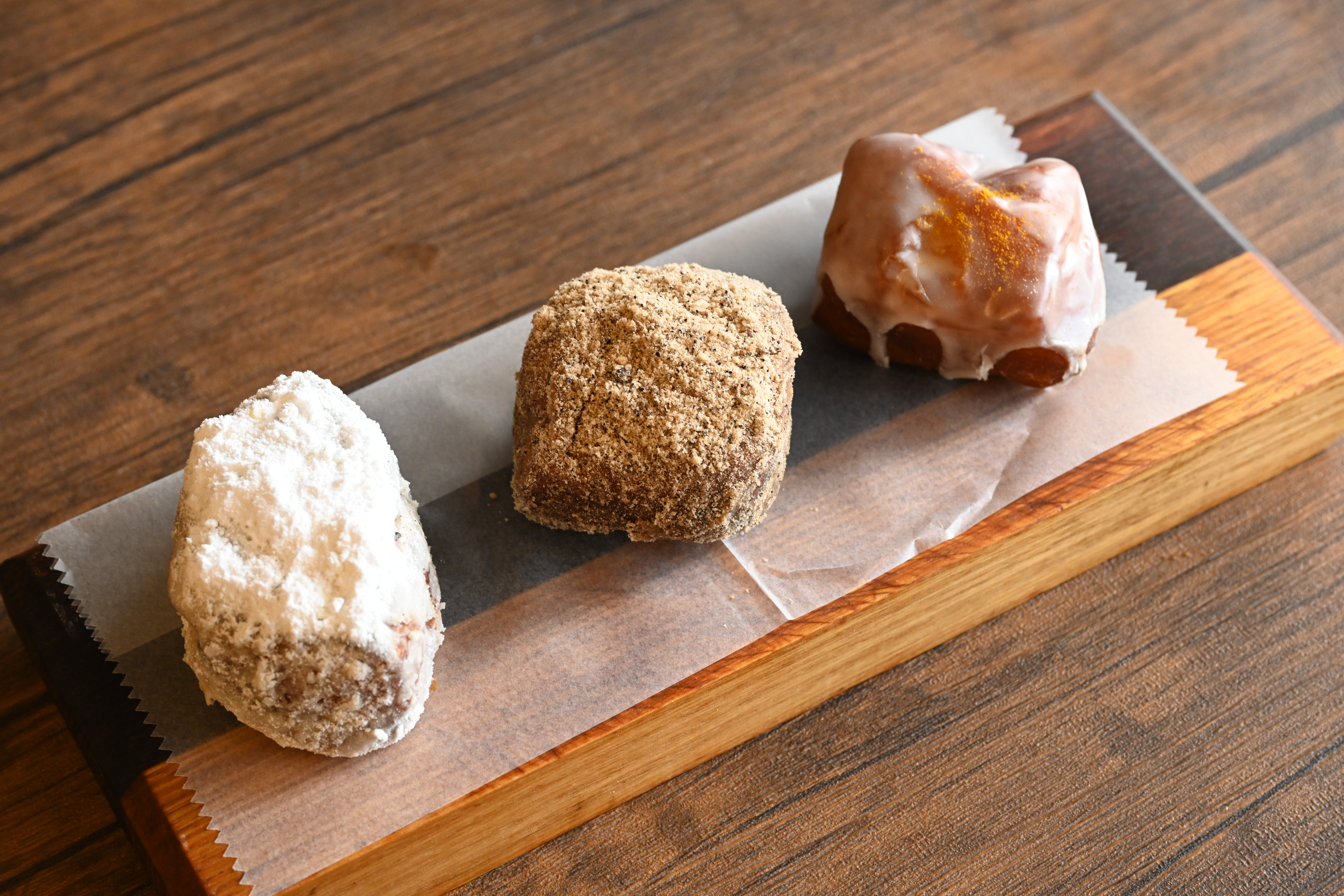 種類は豊富で、粉糖、きな粉、シナモンシュガー、きび糖コーヒーが1個130円。レモングラサージュ、黒糖が1個150円。店長の古山さんによると、「スタッフのイチオシはきび糖コーヒー」とのこと。値付けの安さに二度見してしまいますが、「地元の子どもたちがしょっちゅう買いに来られるように」と、手頃な価格にしているそう。お店のそんな想いも、逗子の住民たちに愛される理由のひとつになっています。