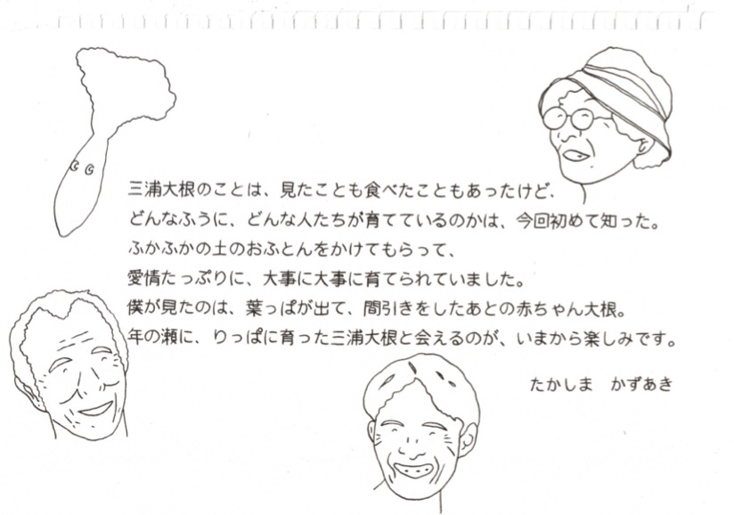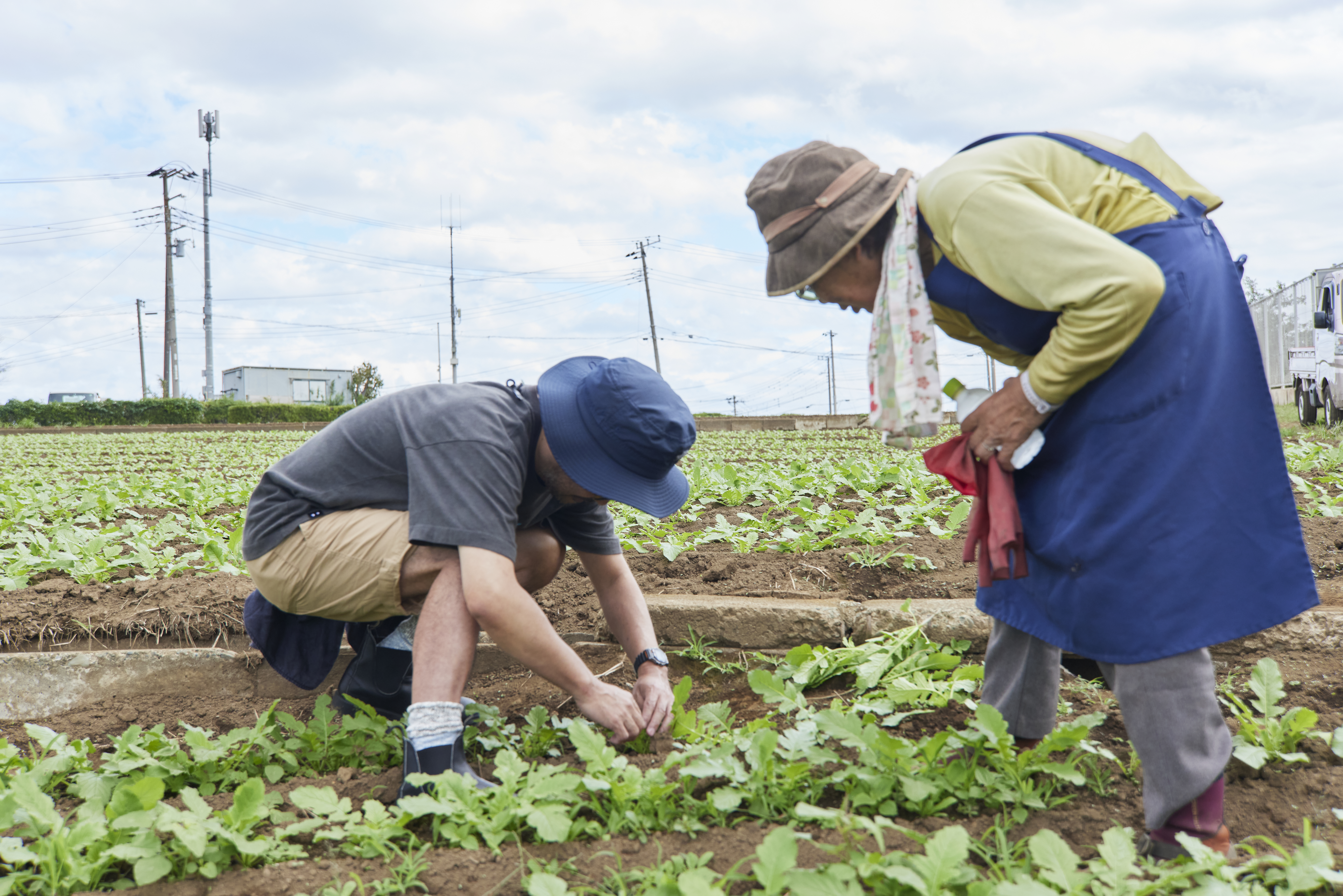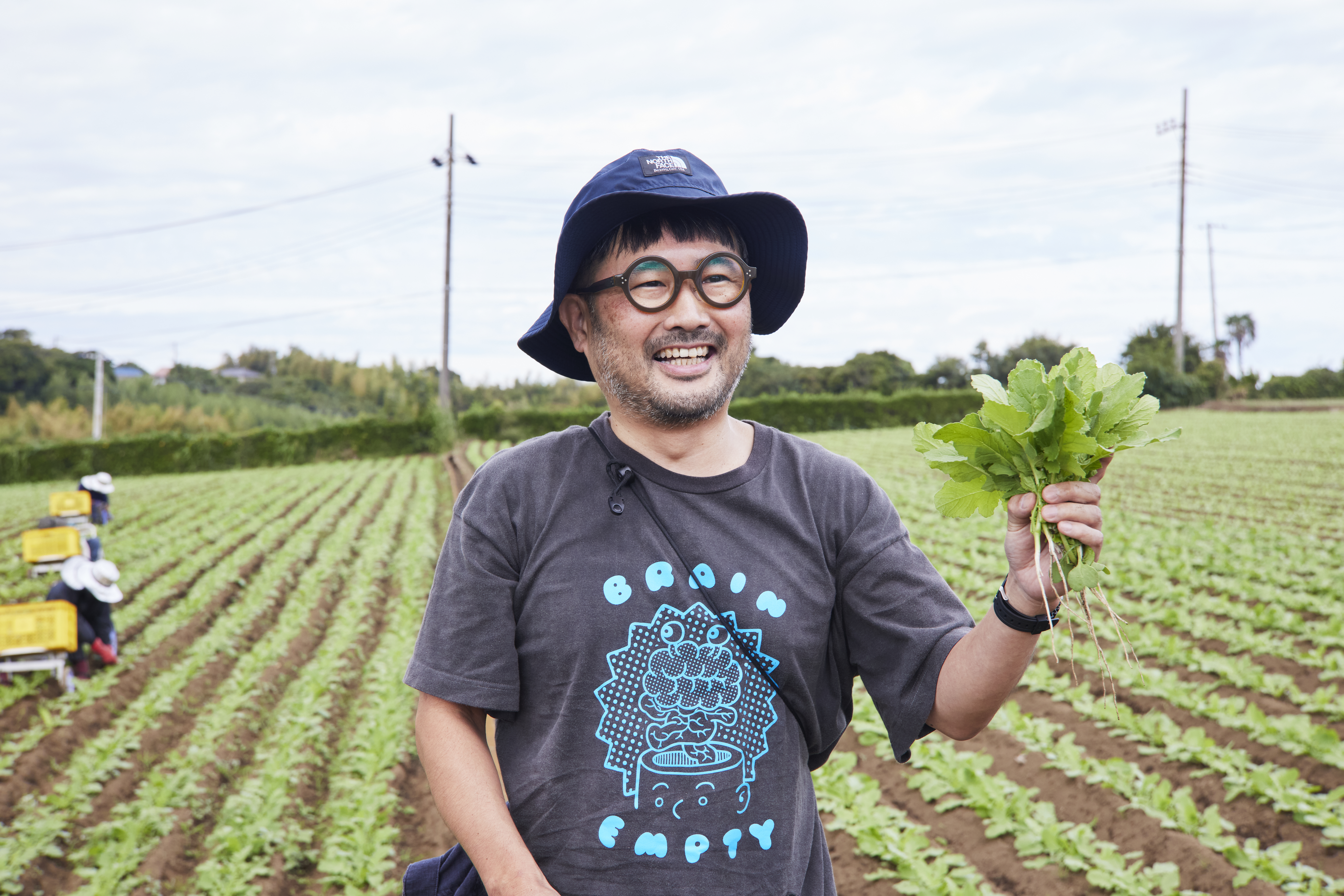 この日は、三浦大根100周年記念プロダクト「三浦大根BAG」のデザインを担当してくださる、ファッションデザイナーの髙島一精さんと共に三浦の畑を巡りました。