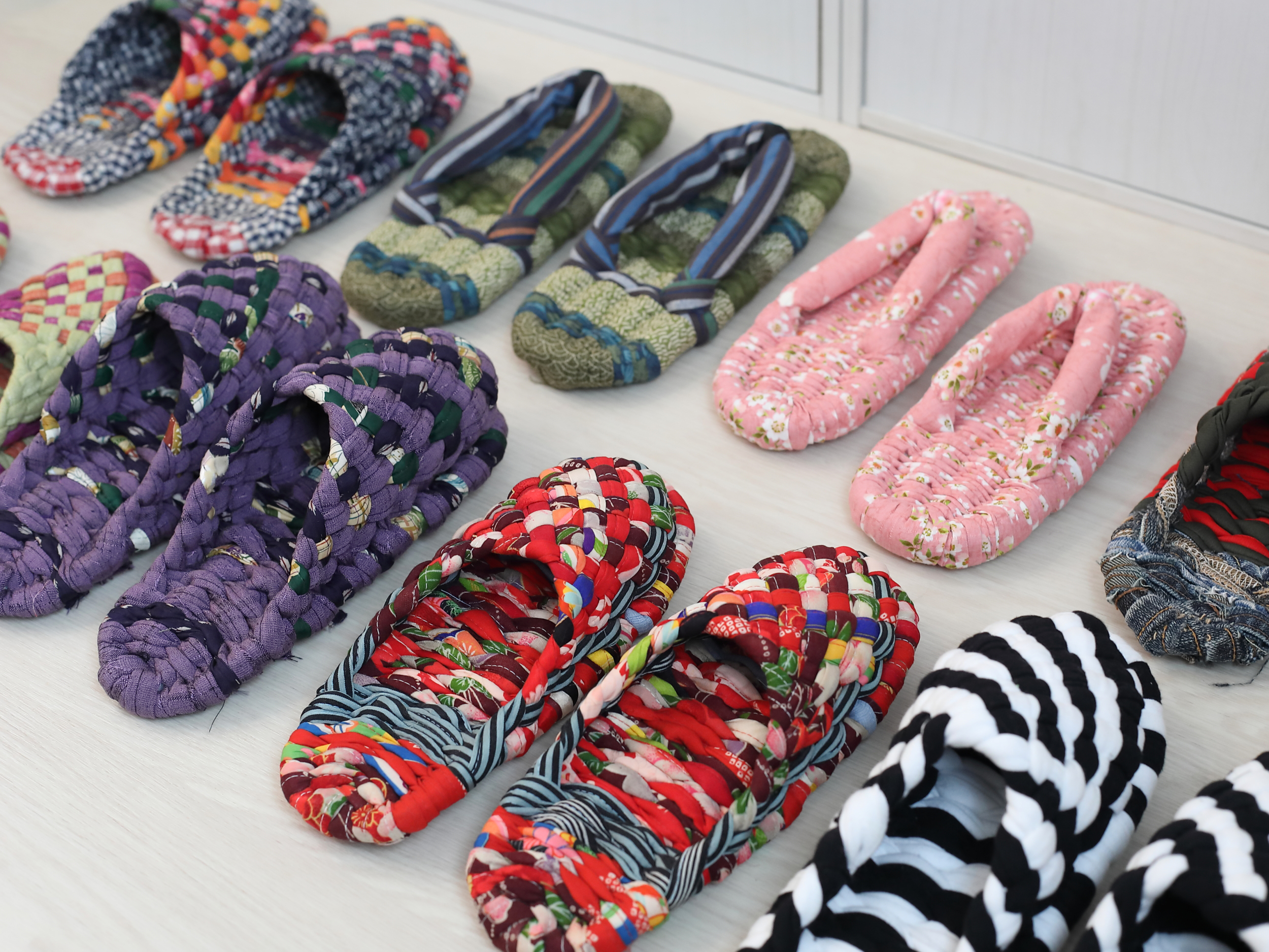 横須賀「布ぞうり工房 禅蔵」の市ノ瀬絵里子さんが作るカラフルな布ぞうりは、指の間も痛くなりにくい優しい履き心地が魅力。