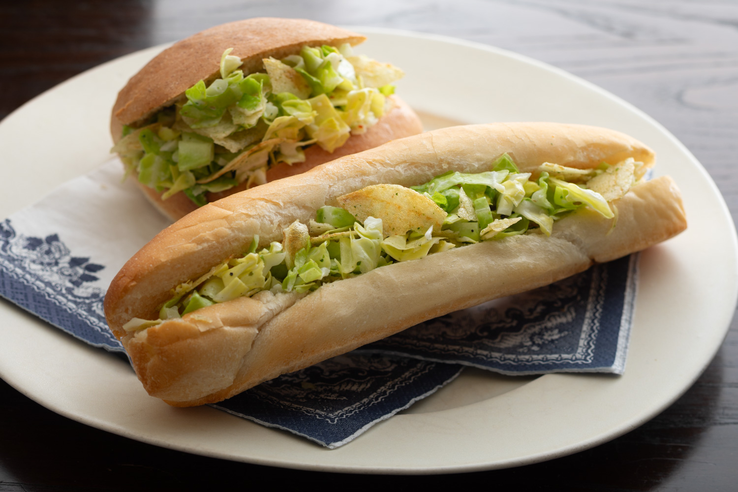 ポテトチップスが水気を吸ってくれるので、しばらく置いてから食べても美味しいのですが、せっかく家で作るなら、パンが温かいうちに食べるのがおすすめです