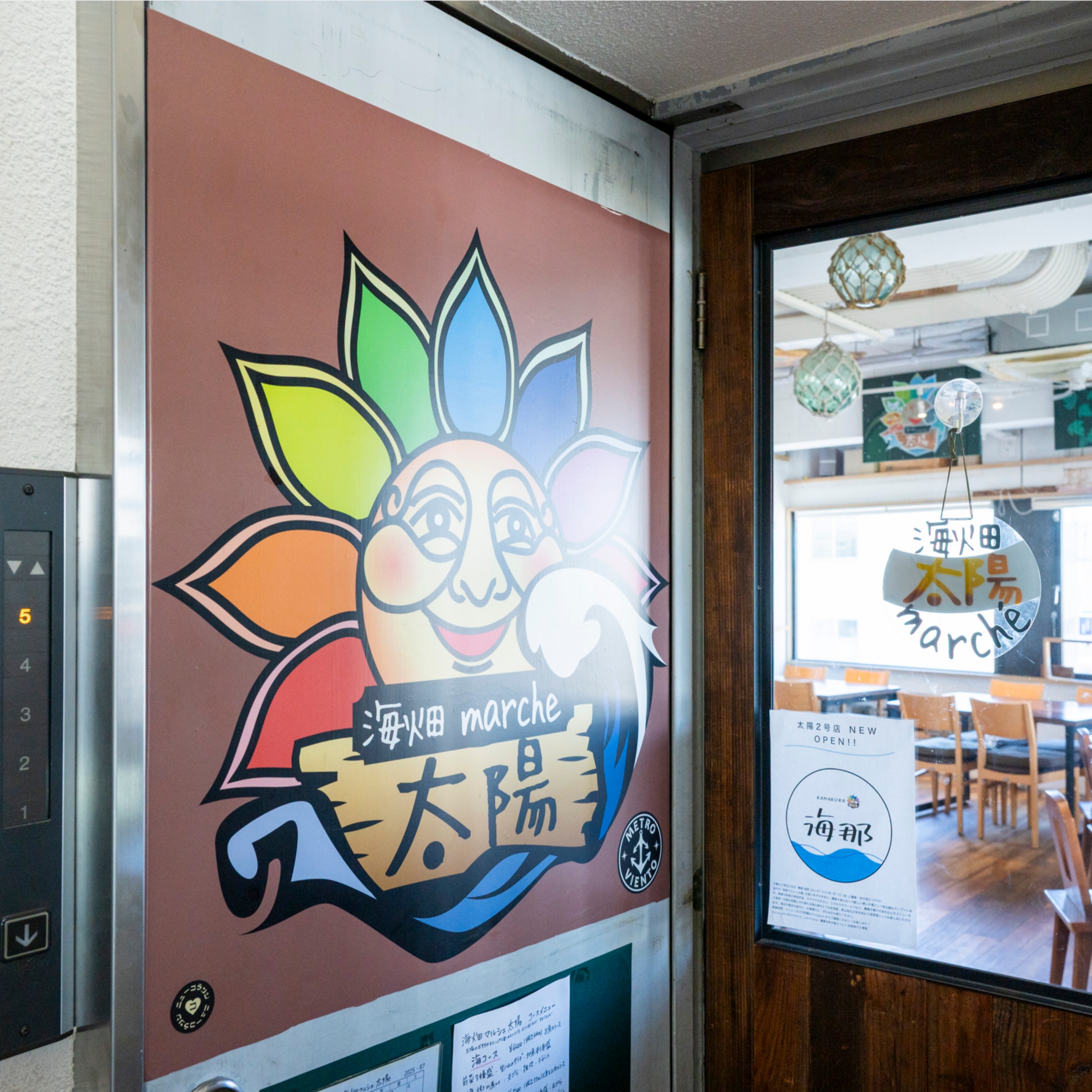 JR逗子駅前のビルにある「海畑マルシェ太陽」。エレベーターで5階に上がると窓から逗子一帯から海までの眺望が広がります。