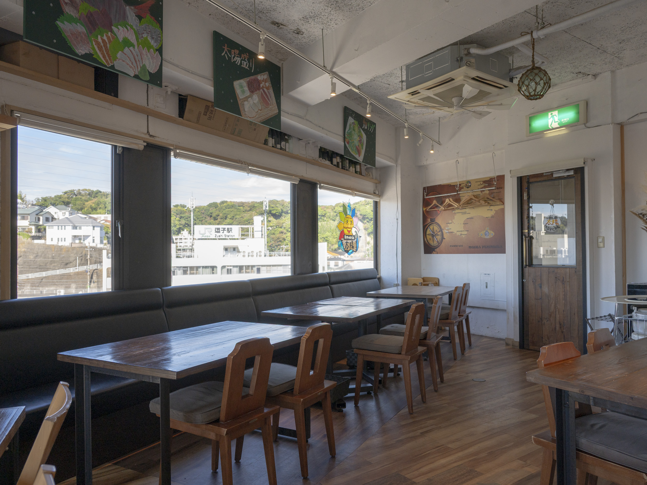 エレベーターで5階に上がり店内に入ると、大きな窓から逗子駅付近の眺望が広がります。