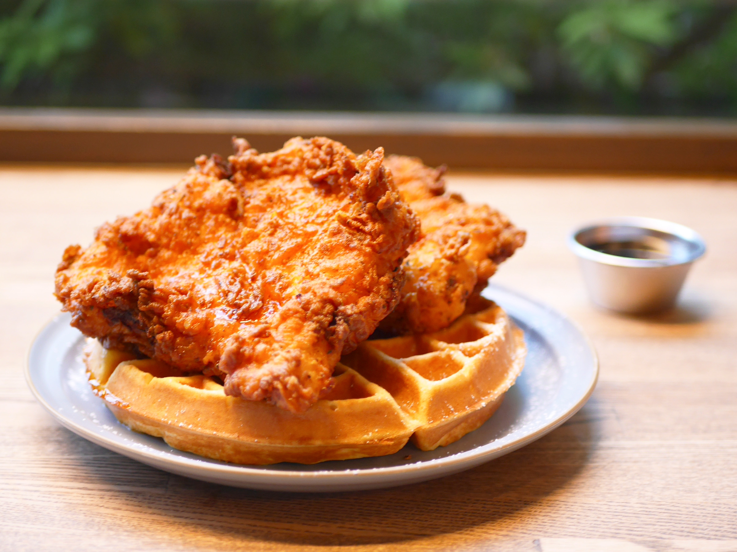 週末限定のブランチメニュー「バターミルクフライドチキン&ワッフル」と「ナッシュビルホットフライドチキン&ワッフル」は、手間を惜しまぬ仕込みで仕上げられる特別な一皿。