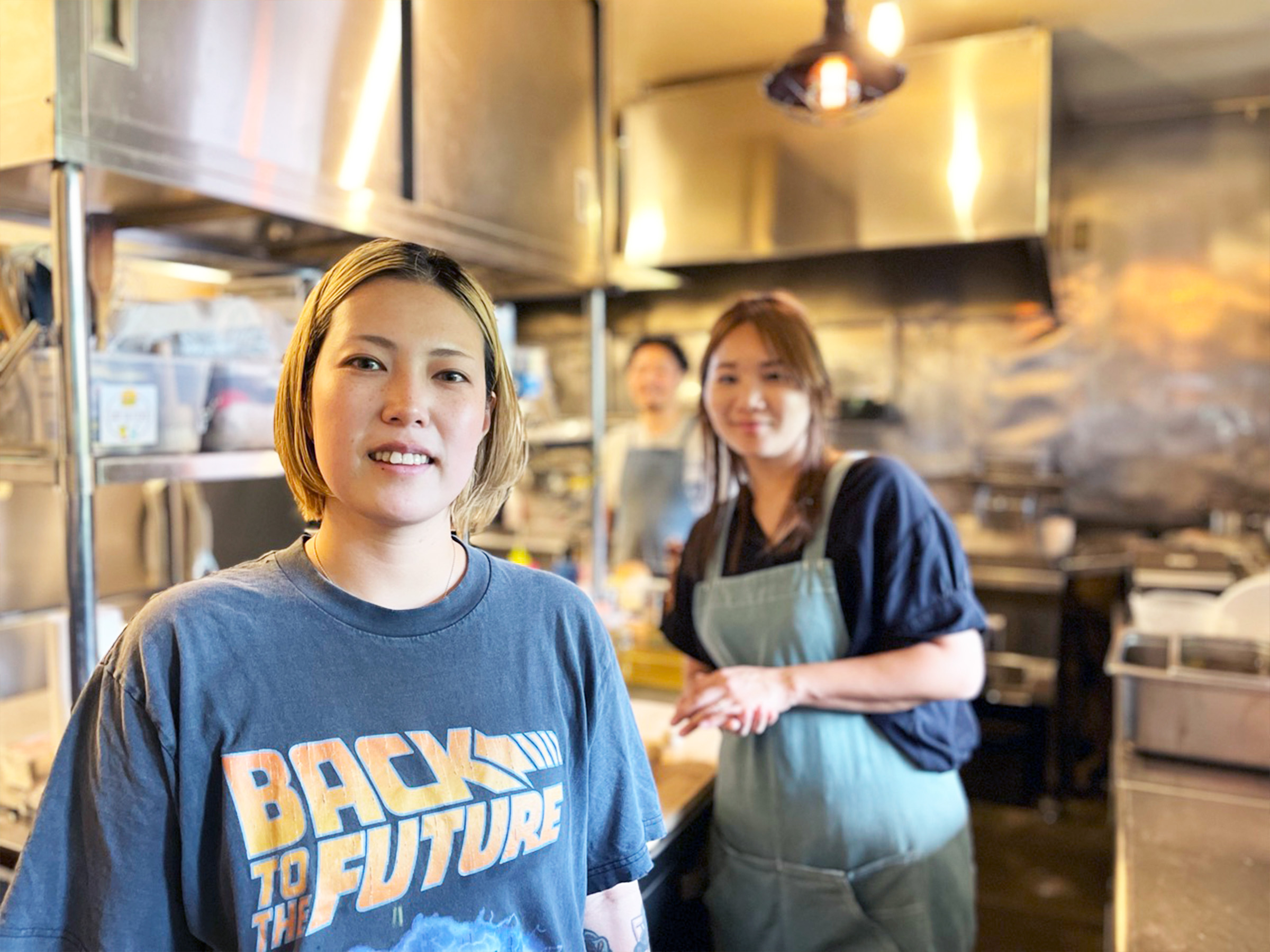 「Sunny Side Kitchen」のもう一つの魅力は、その空間。扉を開けた瞬間からアメリカンな空気が漂い、店内では英語が飛び交います。