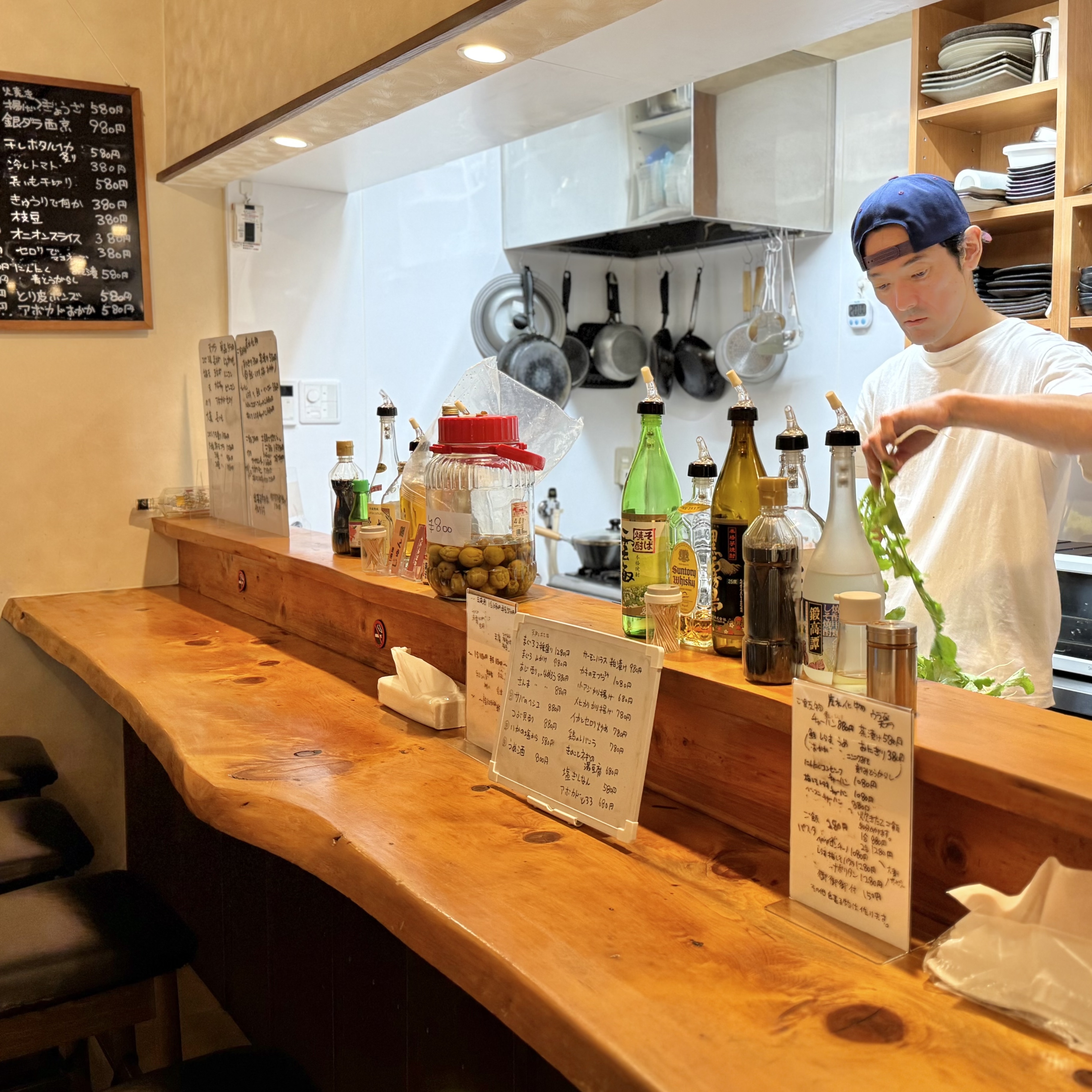 「家庭料理の延長」のような、お酒に合う料理や自身が作りたいものをベースに、ほっとする味を大切にしています。
