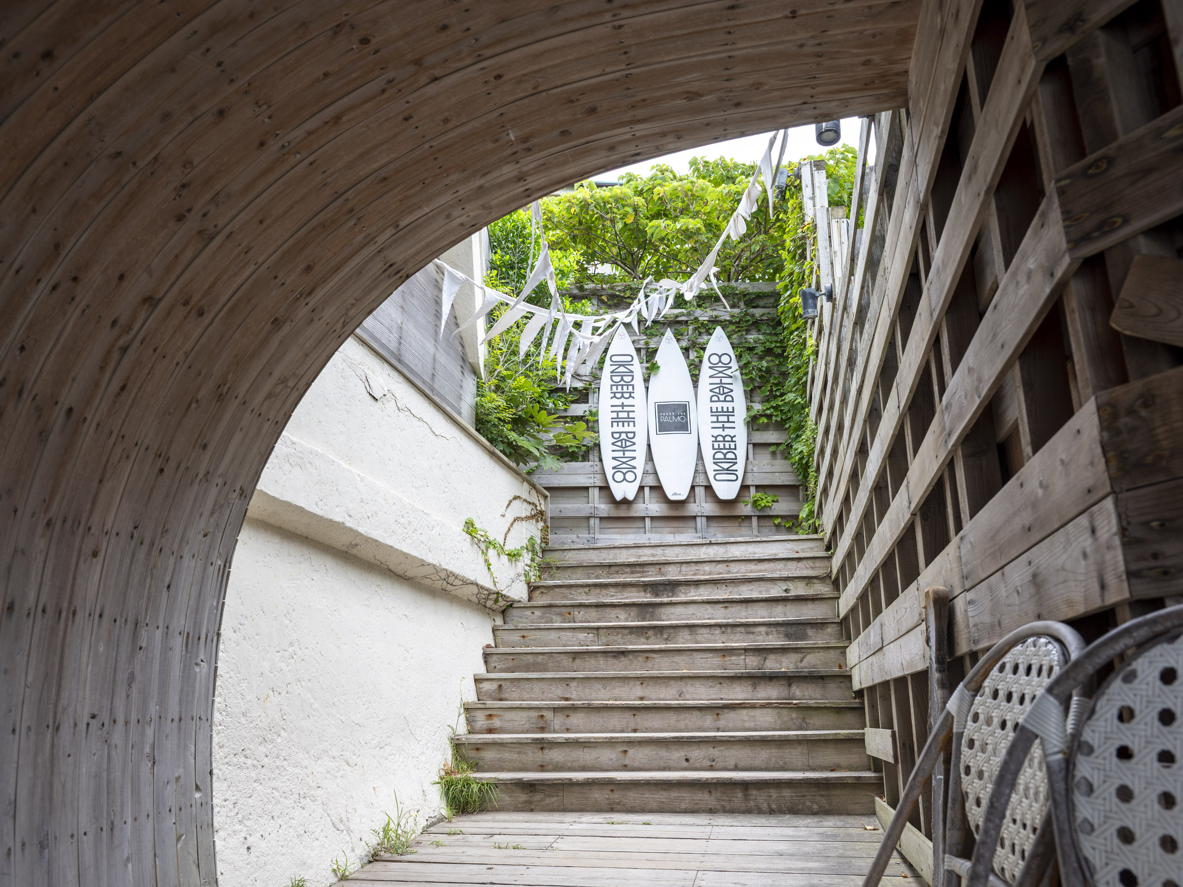 店舗入り口へは、海岸からトンネルを抜けてたどり着きます。このトンネルは非日常への入り口でもあるかのようです。