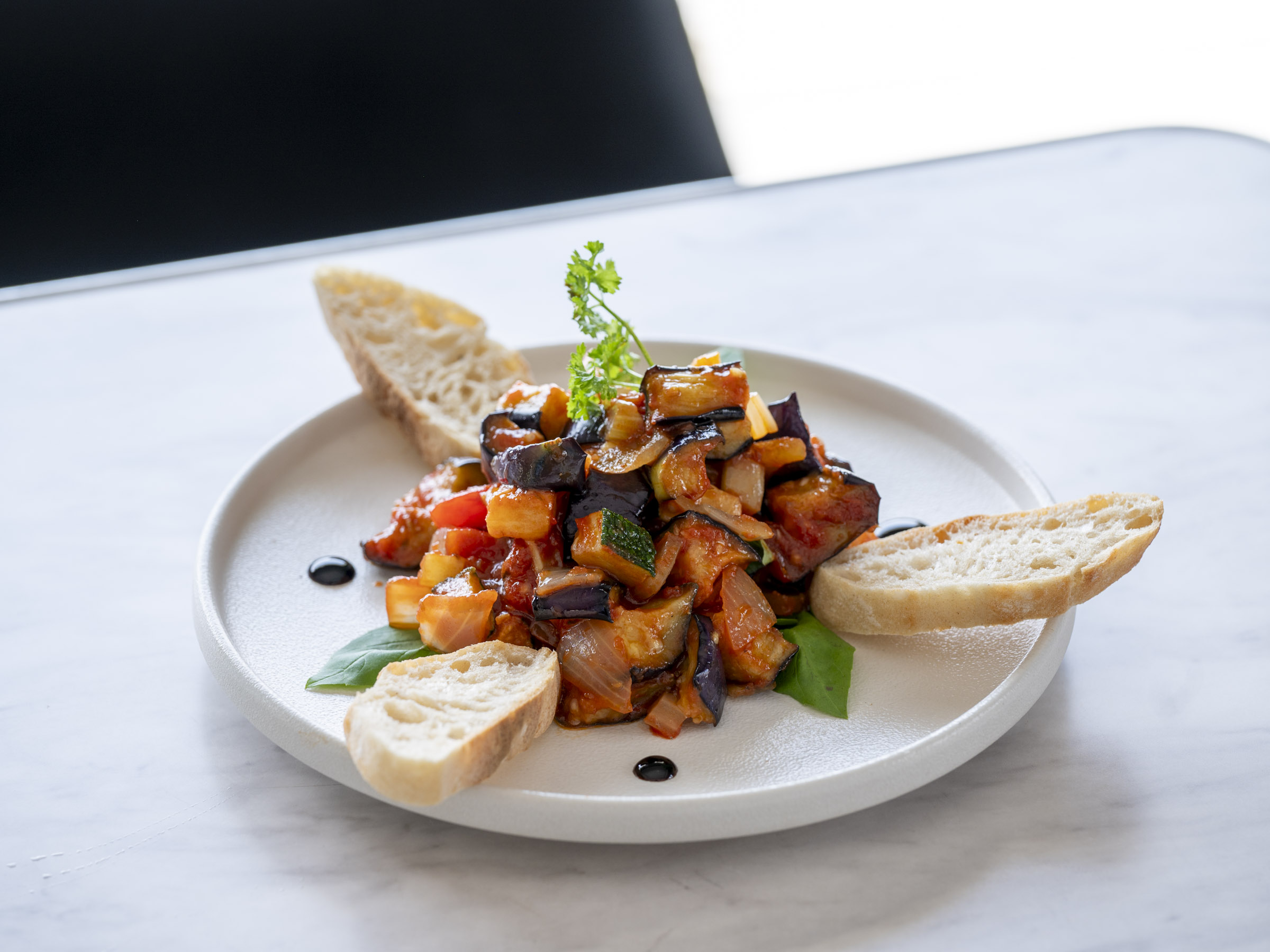 フランスの煮込み料理・ラタトゥイユも、ナスやトマトなど地元の夏野菜をたっぷり使用しています。季節を感じられるメニューが美しく盛り付けられた姿は、見た目からも食欲を増す効果がありそう。