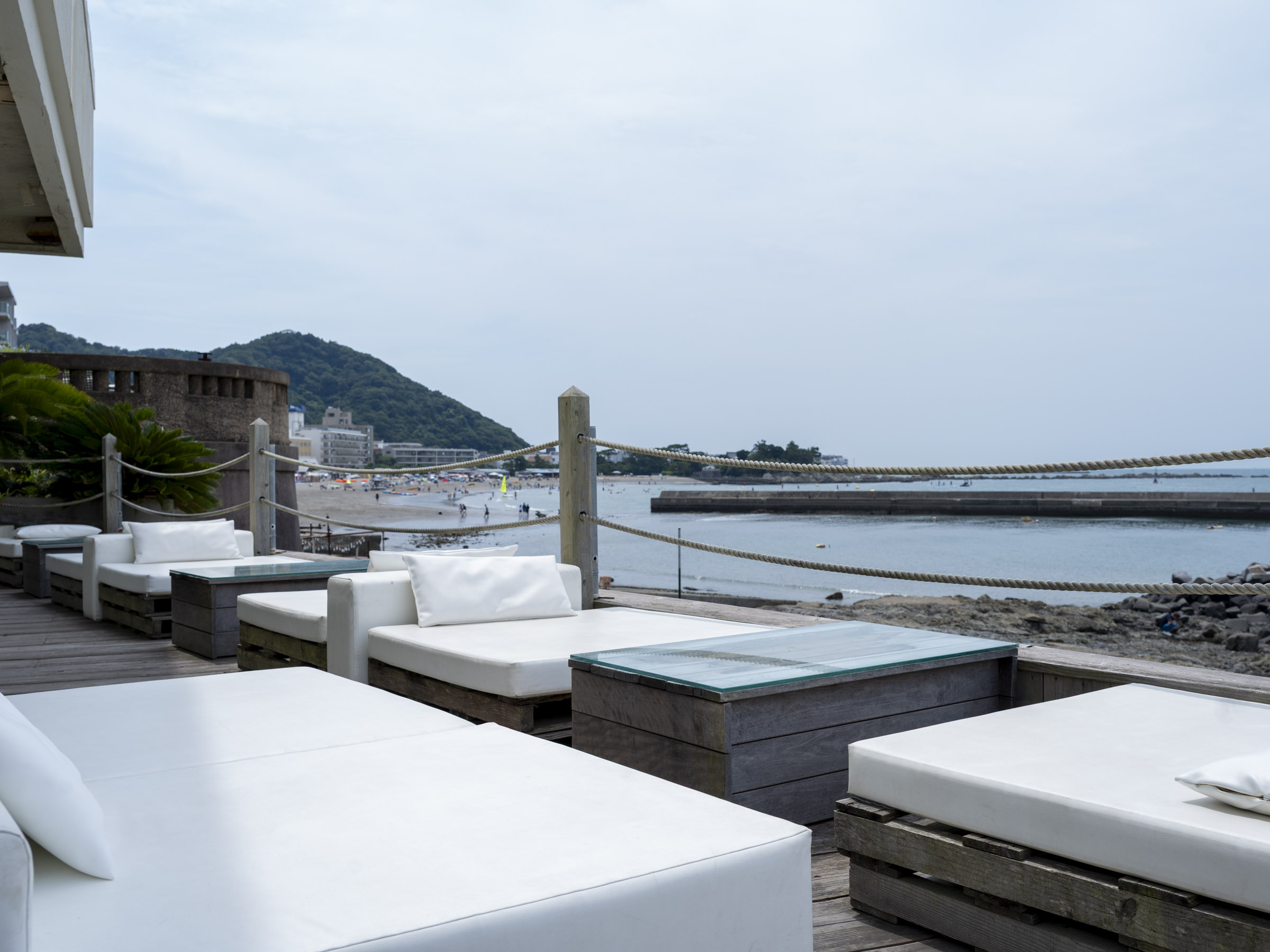 葉山・森戸海岸を一望できるラウンジレストラン「UNDER THE PALMO(アンダー・ザ・パルモ)」。