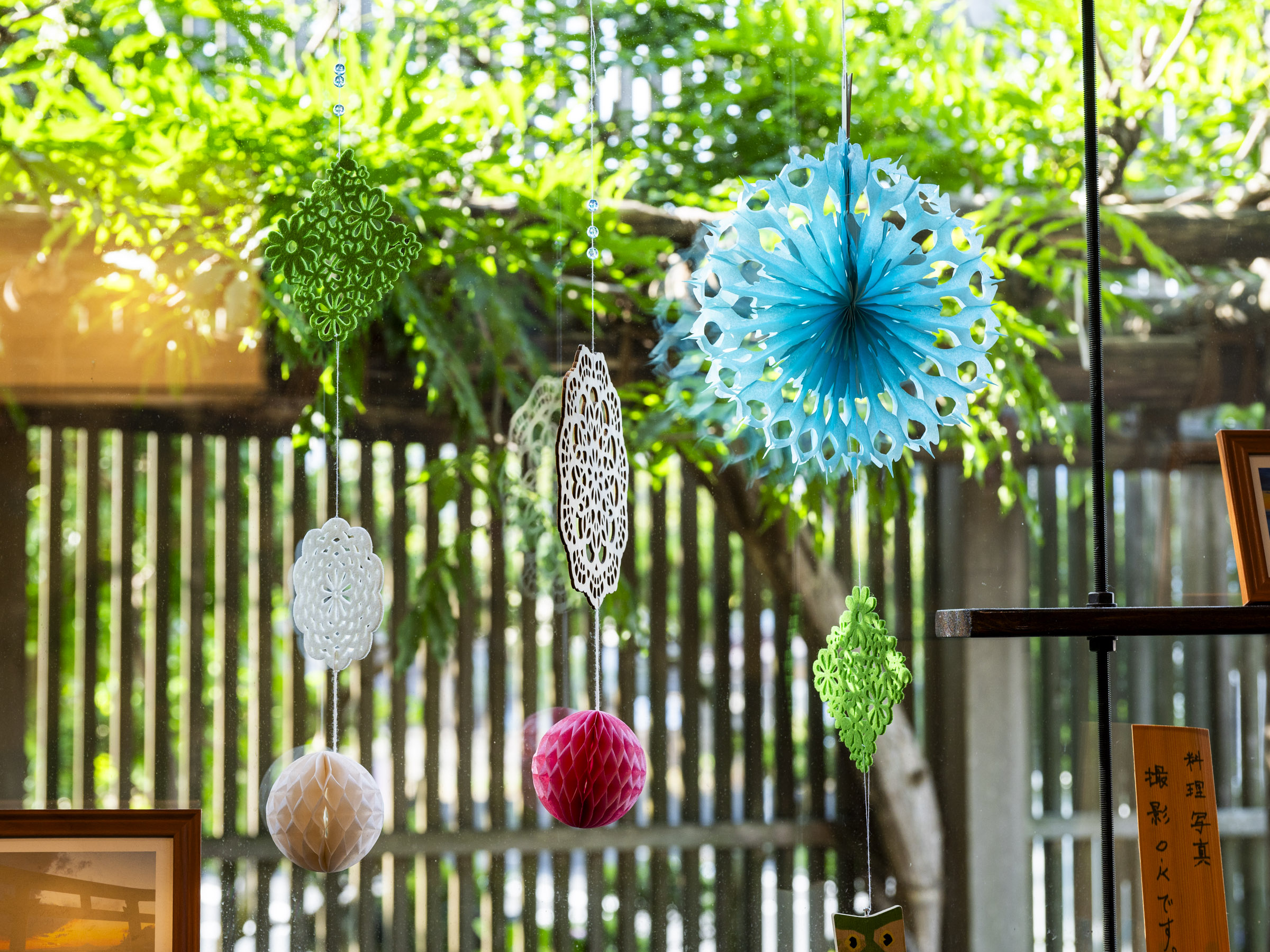 店内には扇子や折り鶴がディスプレイされ、和の雰囲気が醸し出されていました。