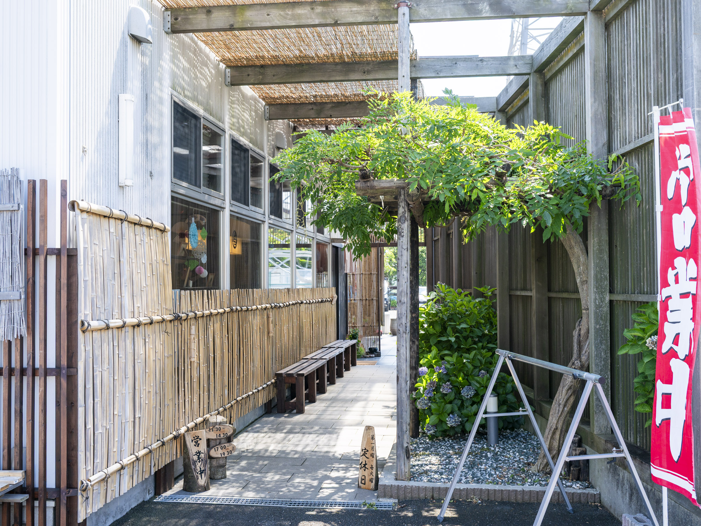十分なスペースがある駐車場からお店の入り口へのアプローチは、古い町並みにあるひっそりとしたお店へ誘っているかのような風情があります。