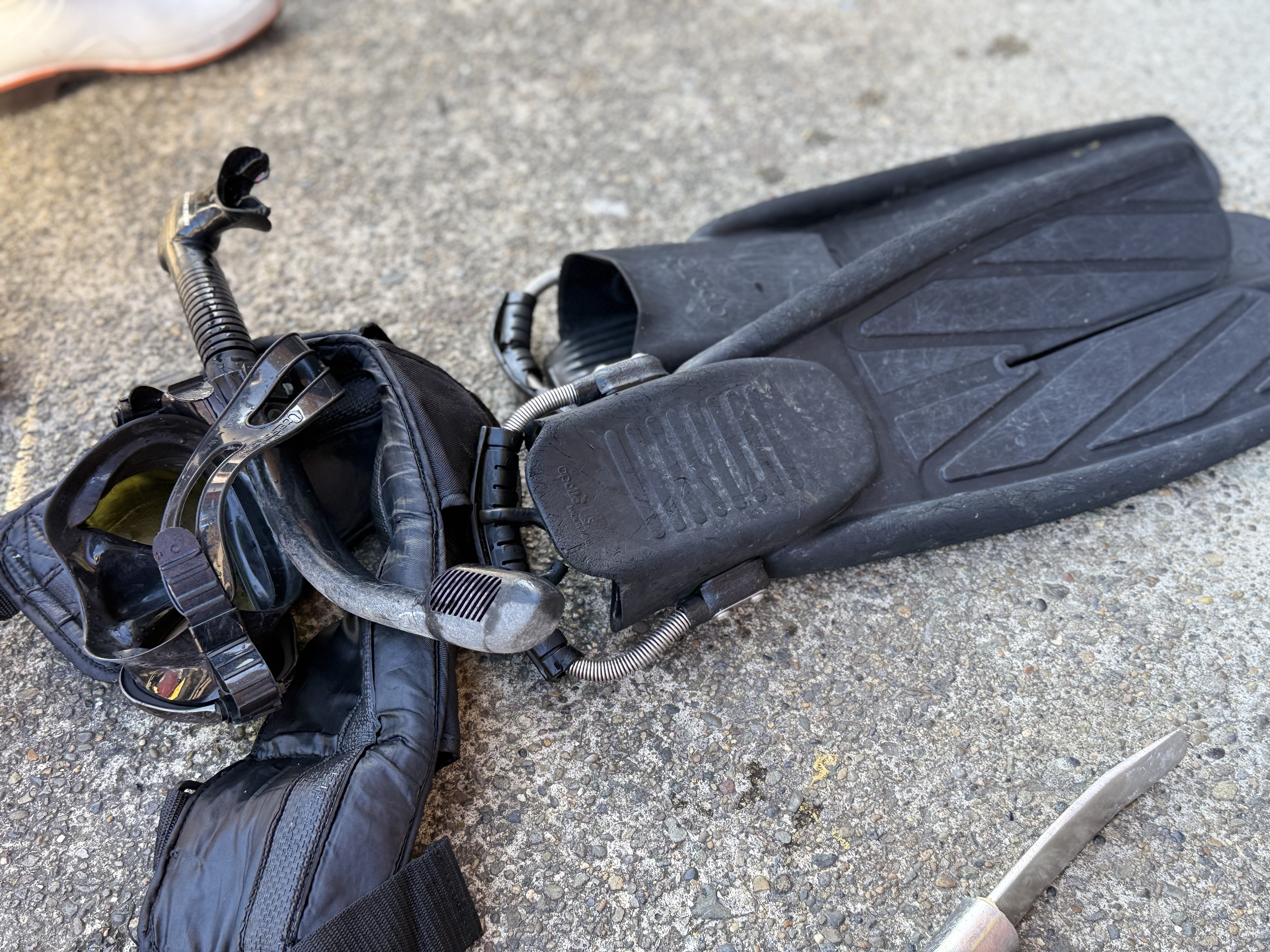 体に負担をかけない高性能の足ひれを装着し、息子さんと二人で海に挑みます。