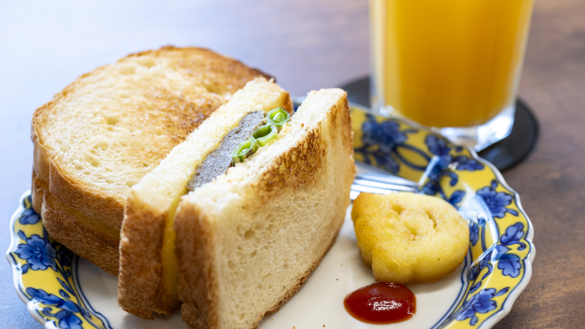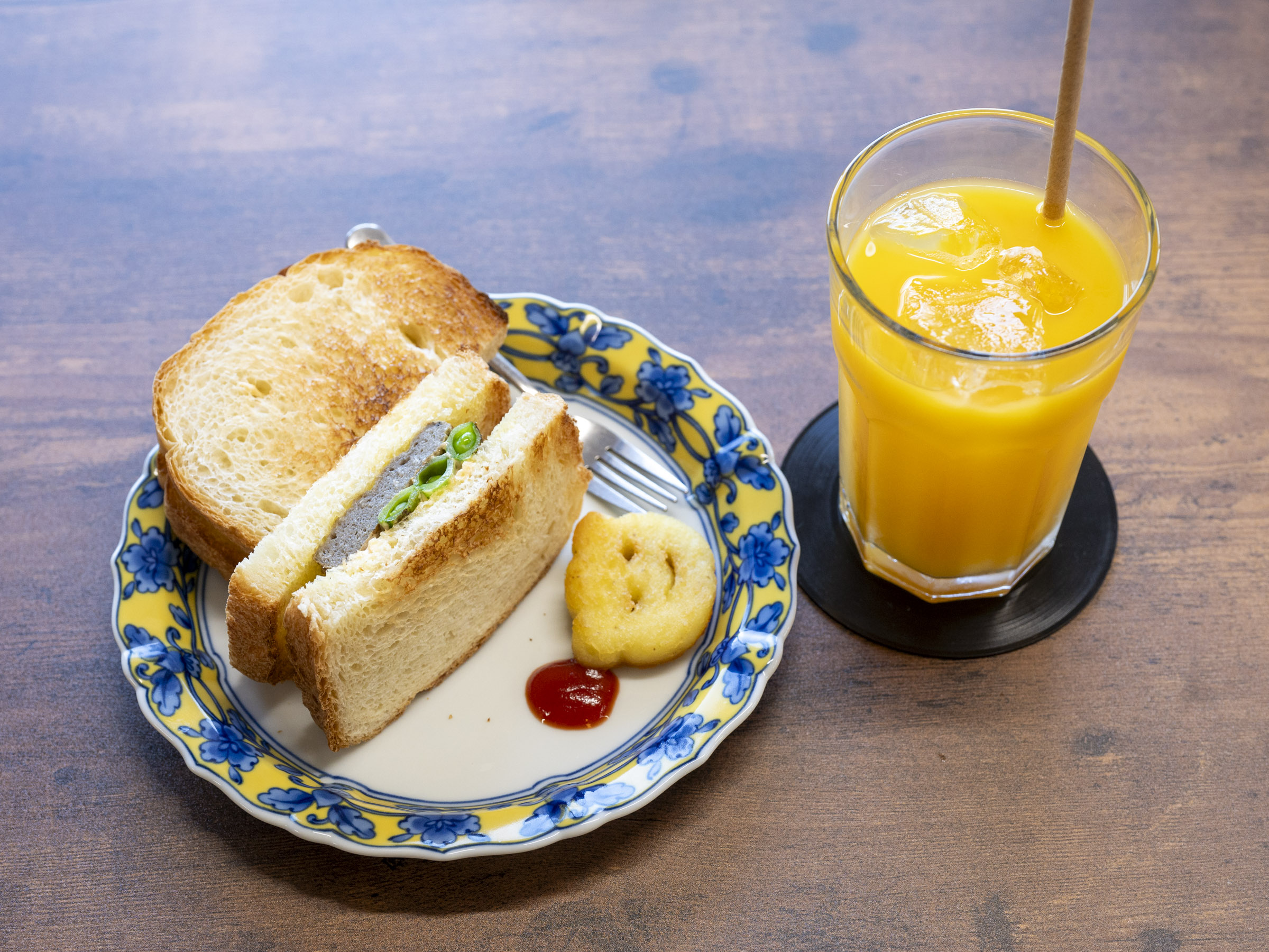 それが、ちょっと珍しい「じゃこ天ホットサンド」と「みかんジュース」のセット(600円)です。