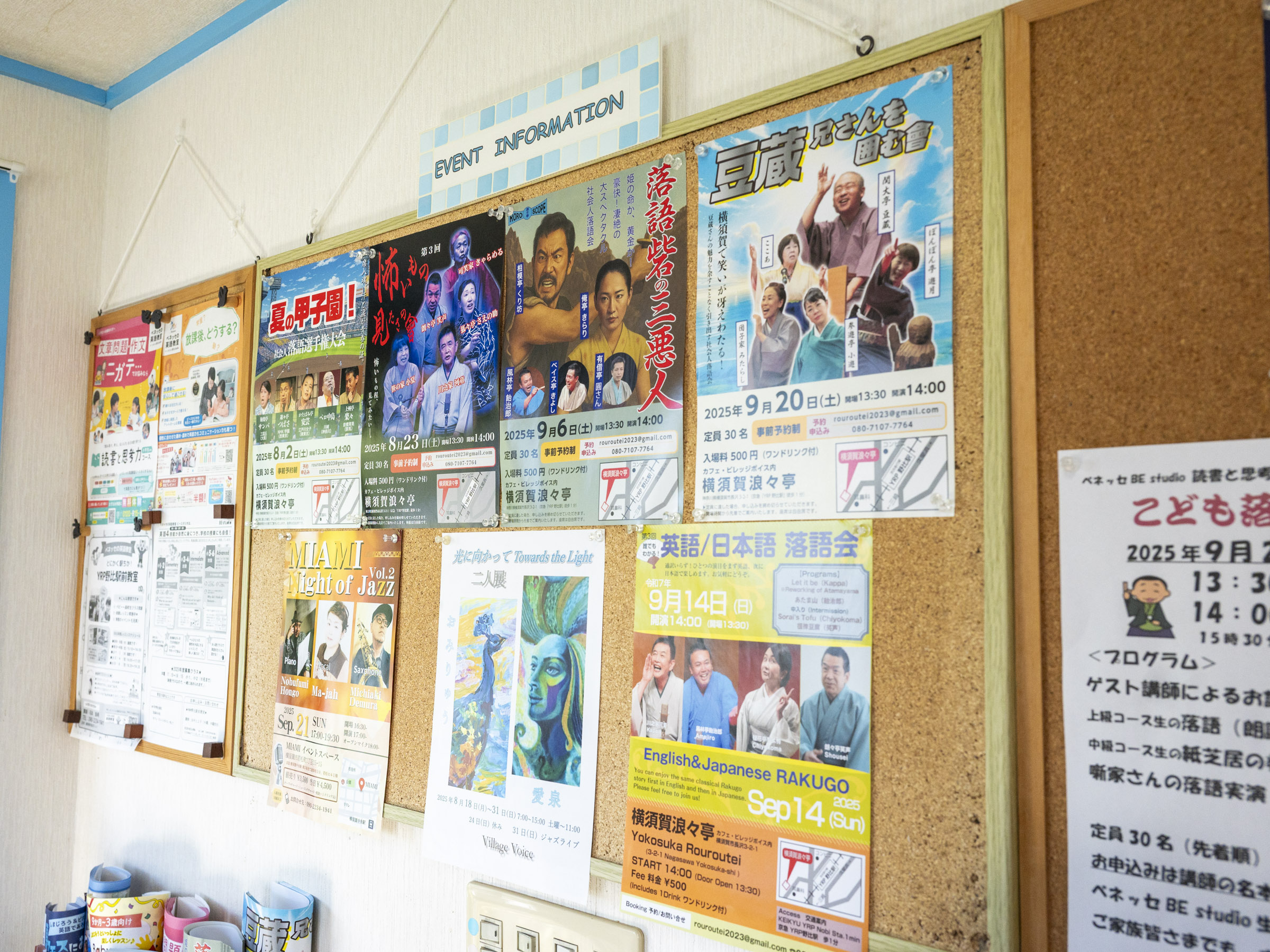 ビレッジボイスでは、月に2回ほど週末に「横須賀浪々亭」を開催。ワンコイン(500円)で楽しめる寄席が開かれています。