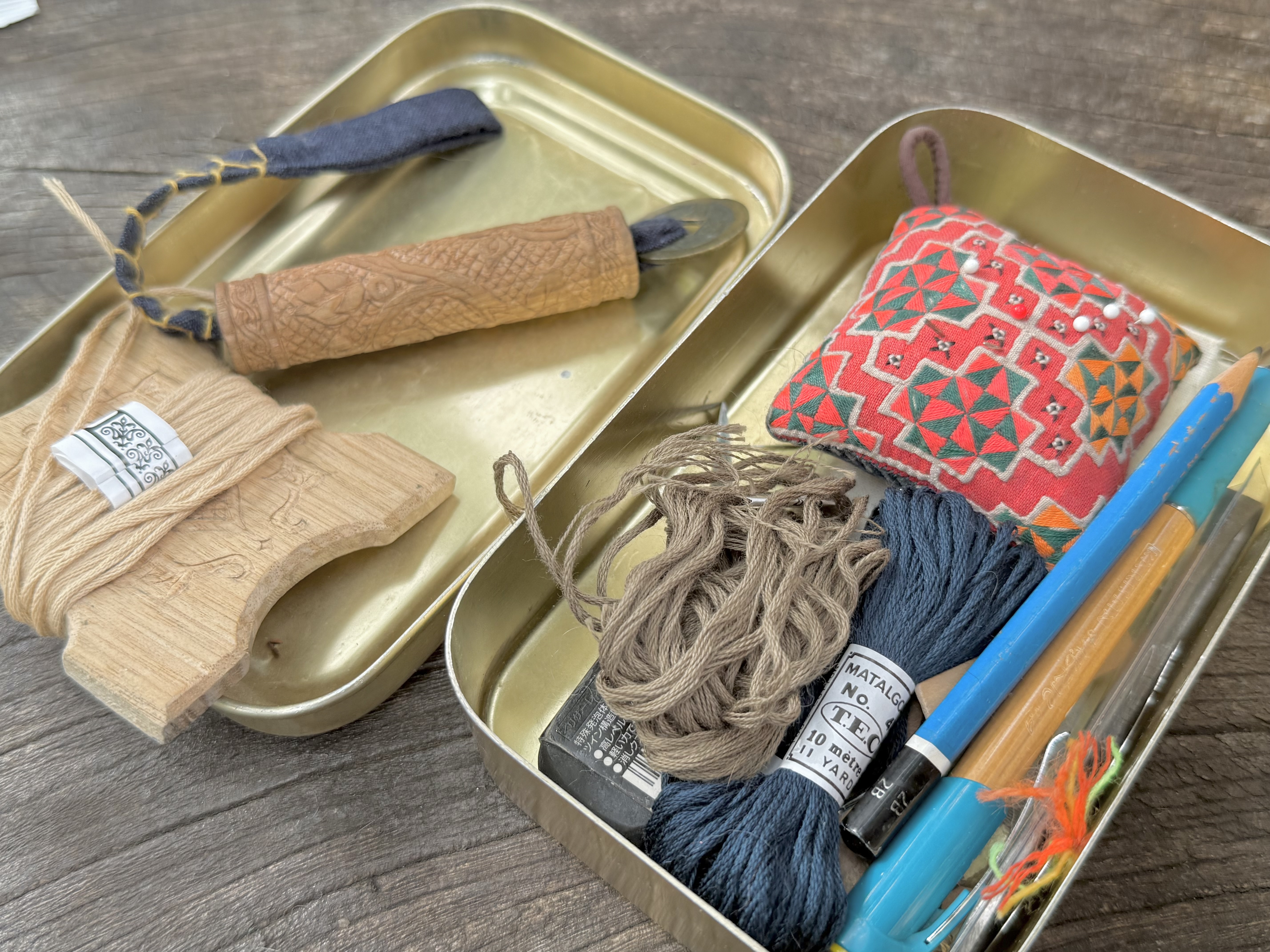 笹本さんは、昔から少数民族の文化や紋様に興味がありました。その民族の文様を書いたり、刺したいという思いから、アイヌ刺繍を習い、布を修繕・再生させるボロや刺し子などを経験してきました。