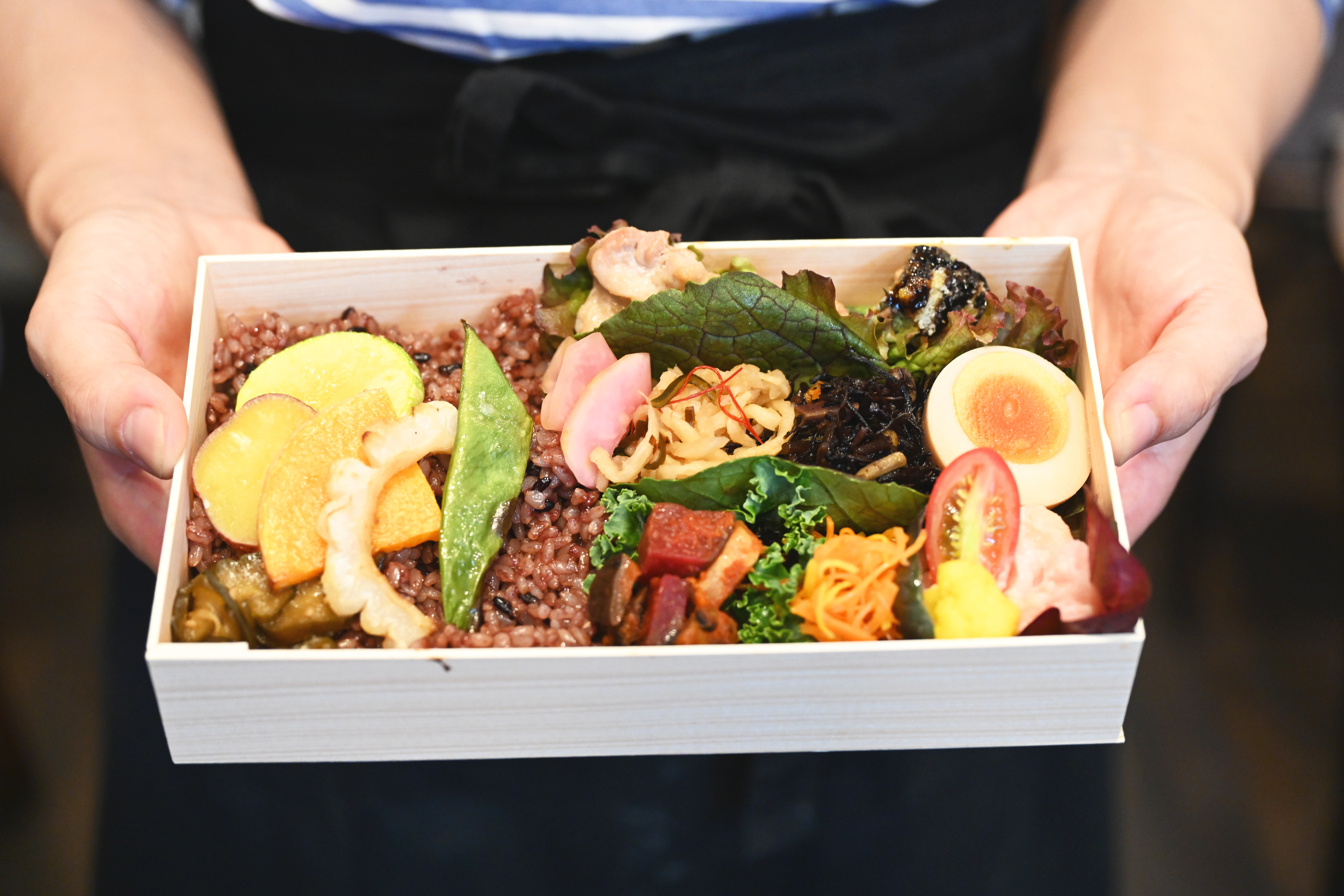 「幸いにも逗子や葉山はCMやカタログの撮影などが多く、そういった方からの需要も高いですね。店内のメニューと同様に、お弁当の蓋を開けた瞬間に『わぁ!』 とよろこんでもらえたり、キレイなビジュアルに癒されたりするような、彩りのよい盛り付けを心がけています」と、店主の髙橋香苗さん。