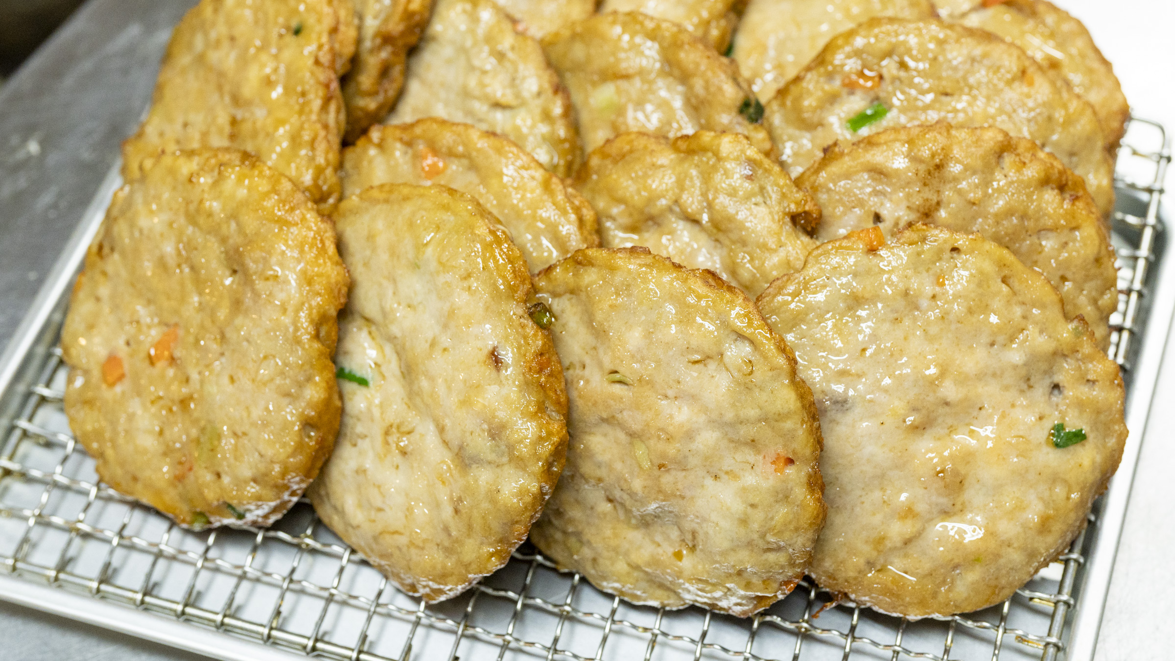 その中でも目を惹くのができたての「鮪のさつま揚げ」(200円)。アツアツを一口かじると、ジュワッと旨みが口の中に広がり、次にマグロと野菜の甘みが広がります。なんて贅沢な旨み!