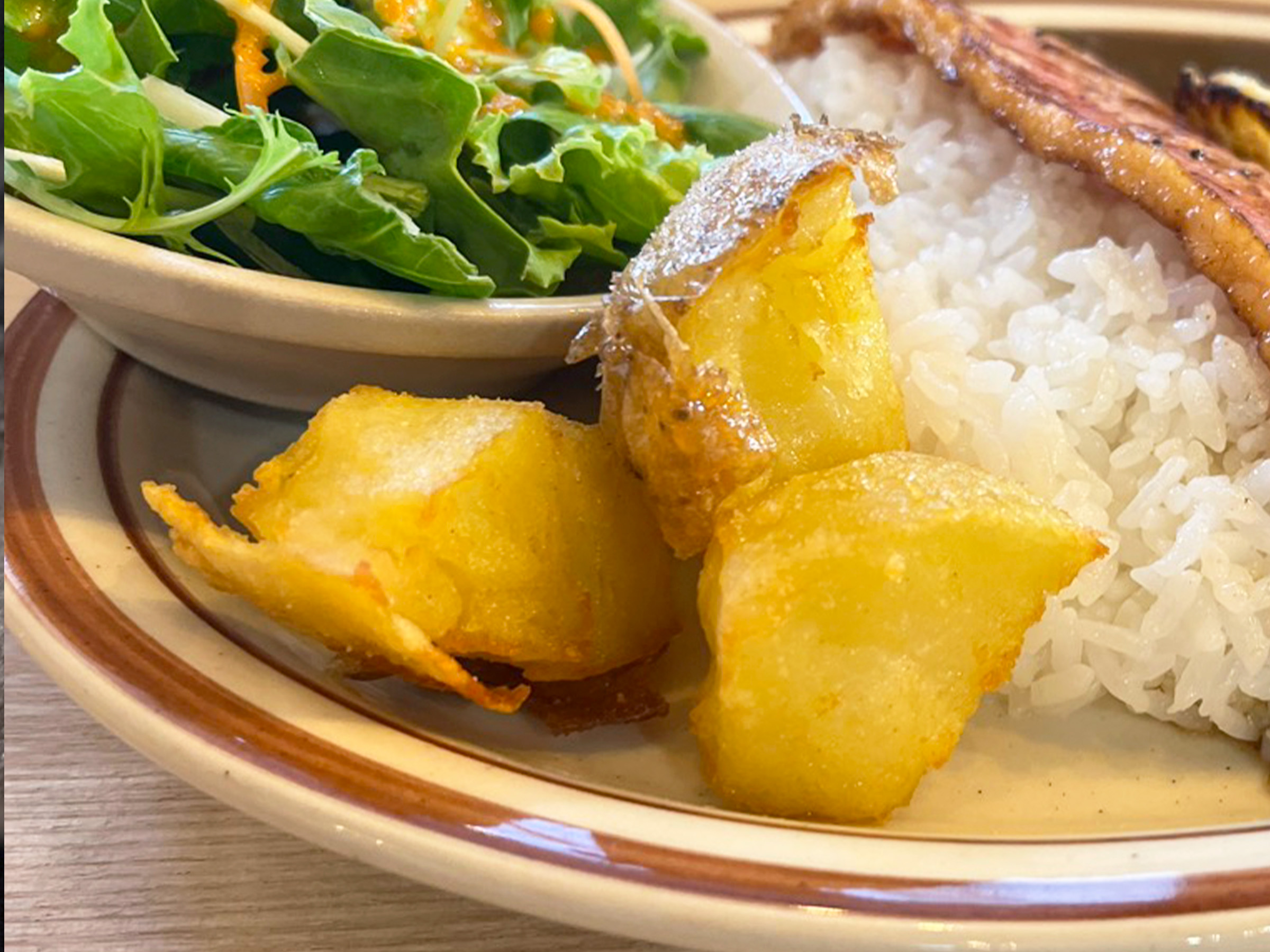 黄身がとろける目玉焼き、下茹&手割りでのひと手間をかけたザクザク食感のフライドポテトも名脇役。常連客がこれも目当ての一つというのも納得です。