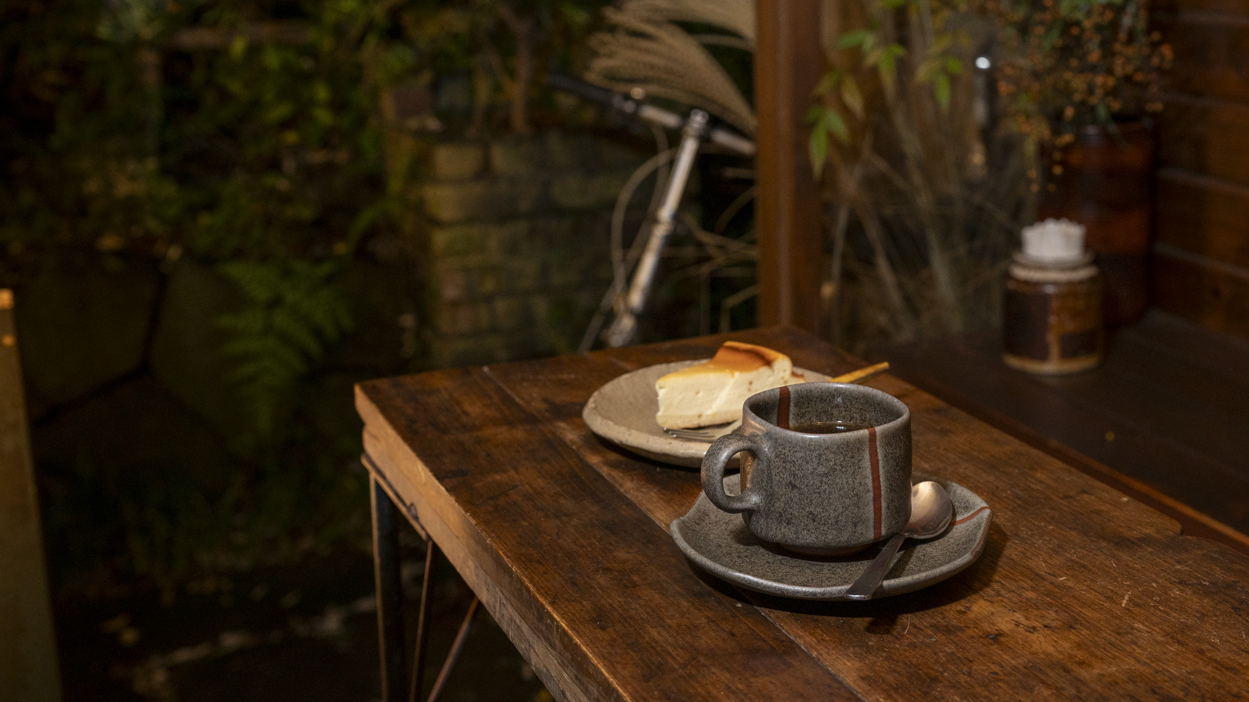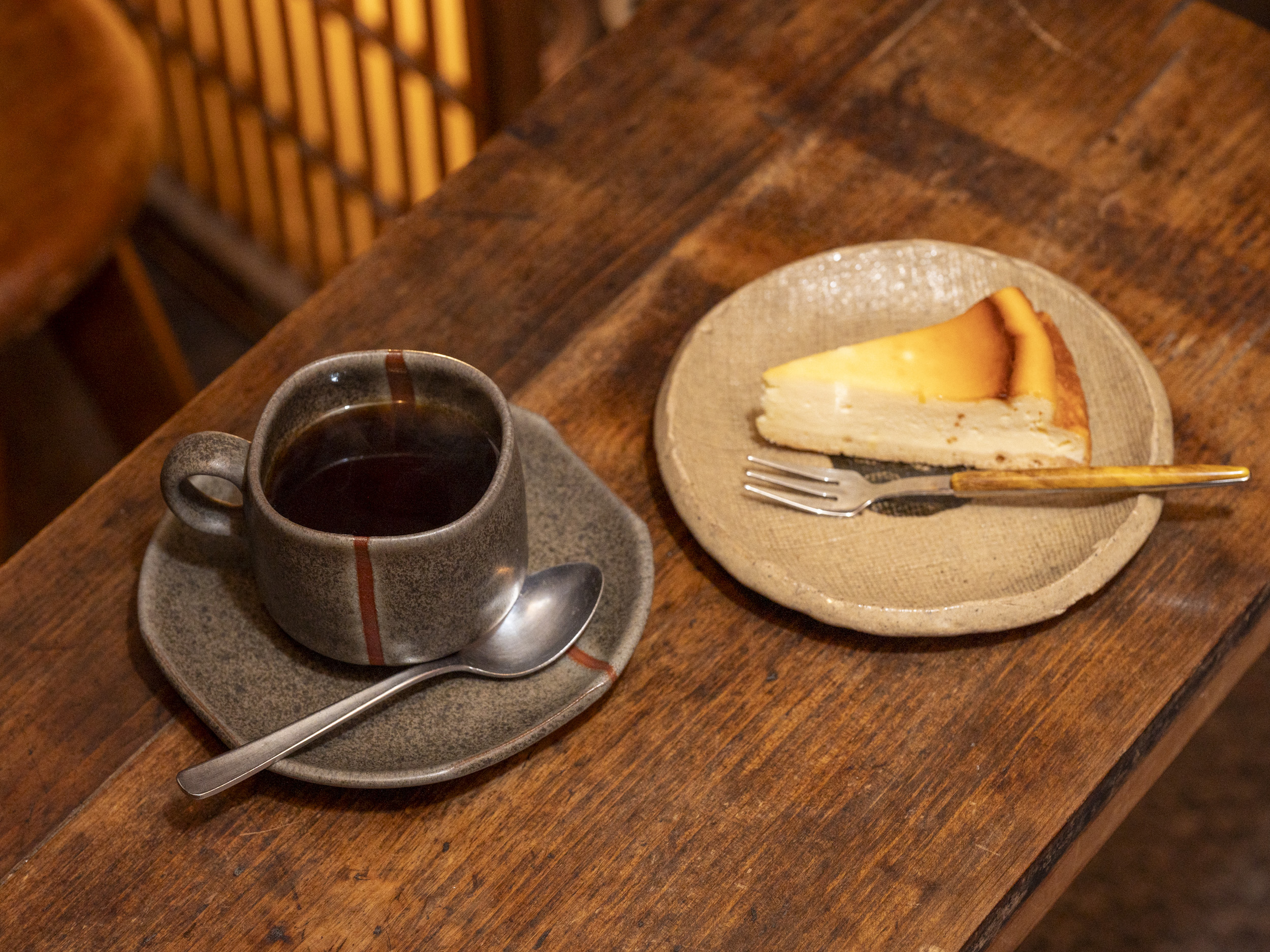 カフェに欠かせないスイーツ。単品なら500円のコーヒーと450円のチーズケーキを、800円のセット価格で提供しています。