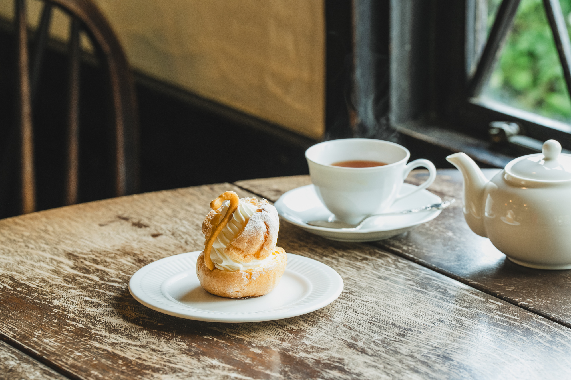 そんな「パティスリー ラ・マーレ・ド・チャヤ」のお菓子の中で、50年近くベストセラーを誇るのが「スワンシュー」(1個470円)です。繊細で愛らしいスワンの形をしたシュー生地に、手絞りの白いホイップがまるで羽毛のような可憐さ。手作りのため、顔の形が1つ1つ微妙に異なるのもまた愛らしさが増します。