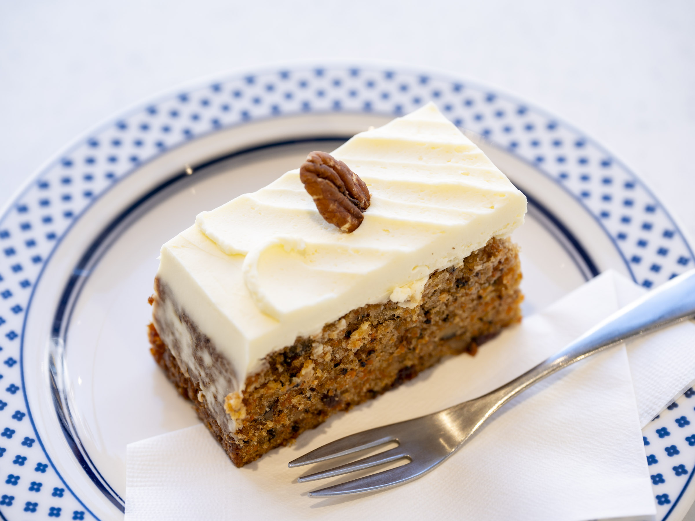 人気はキャロットケーキ(540円)。ドライフルーツとクルミがたっぷり入ったケーキです。並んでいるスイーツはどれも自家製。季節によってラインナップは変化しますが、常時4種類程度が揃っています。