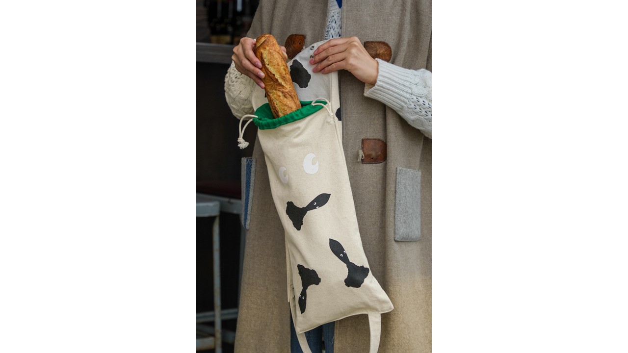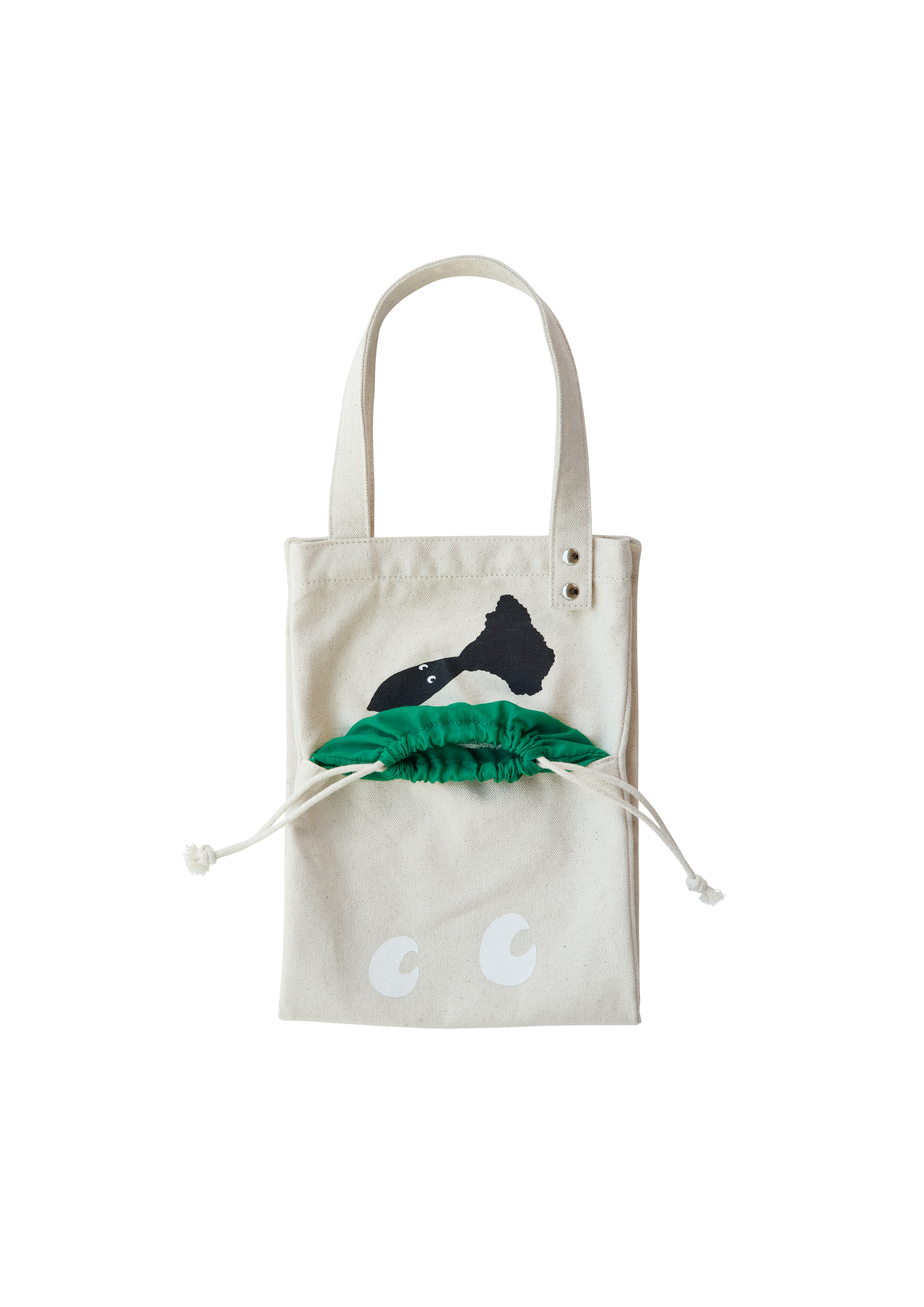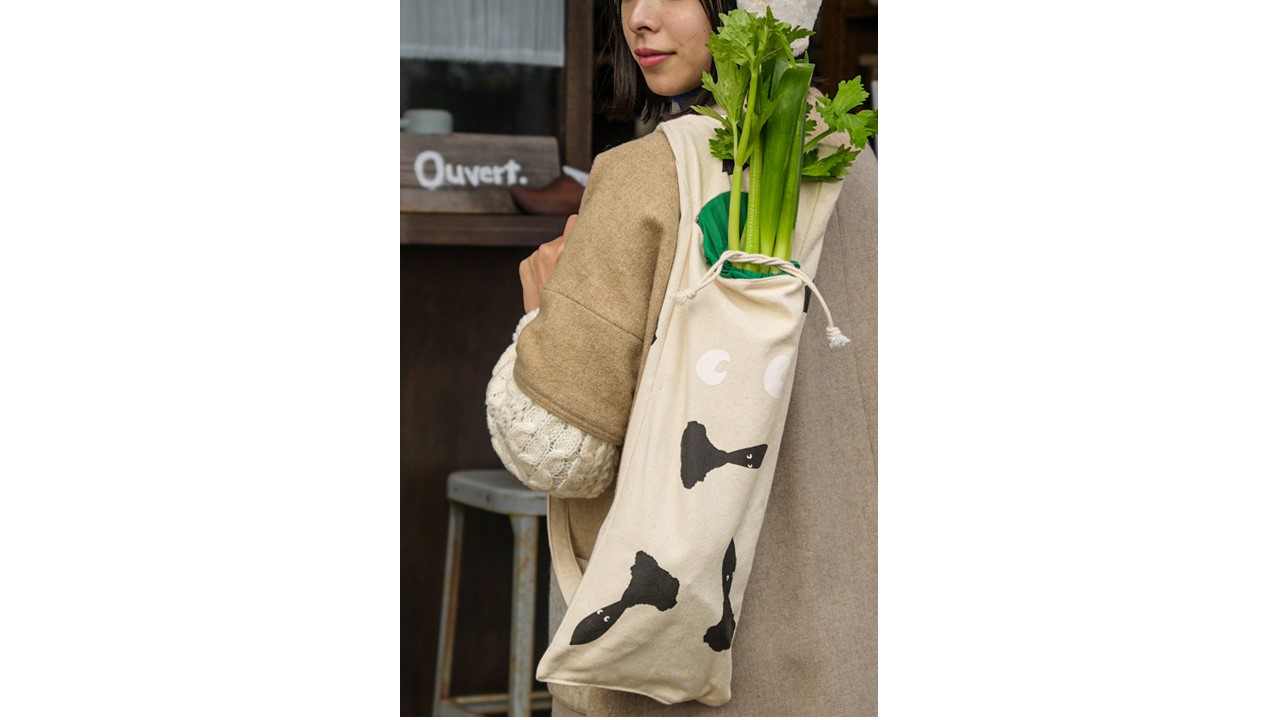 毎日の暮らしの中で楽しめるように、折りたたんでスナップボタンを留めると、可愛い大根モチーフのミニトートに変身します