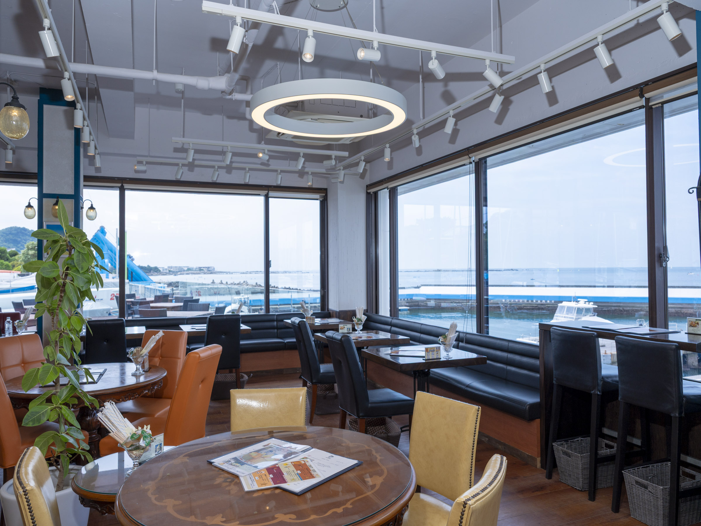 大きな魅力は、すべての席から葉山の海を一望できること。