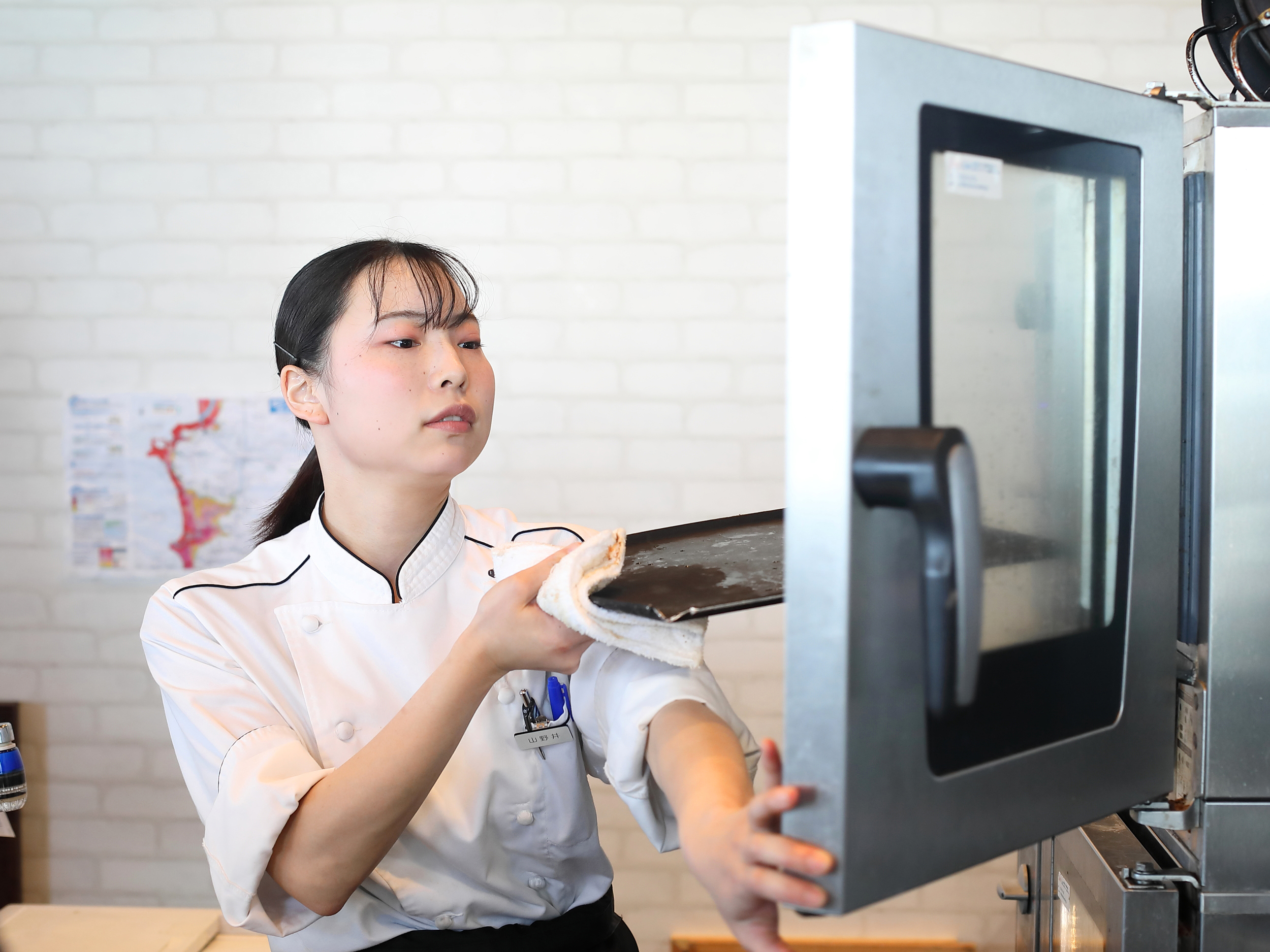 キッチン担当の山野井未夏(やまのいみか)さんは横須賀出身。小さいころから“マーロウおじさん”が描かれたビーカー入りプリンをよく知っていたことから、2024年に入社。将来は自分のお店を持ちたいという夢があり、キッチンを希望しました。