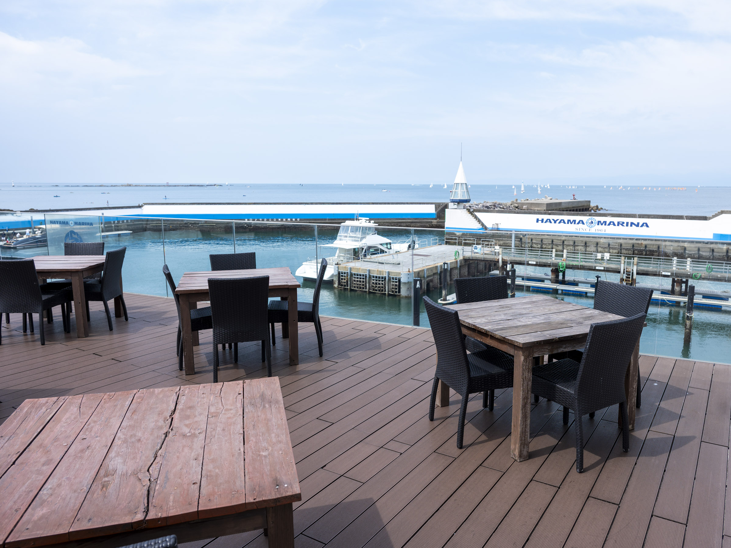 ヨットが並ぶ葉山マリーナならではの景色はもちろん、湘南のシンボル江ノ島や天気の良い日には富士山も望めます。夕暮れ時もおすすめです。