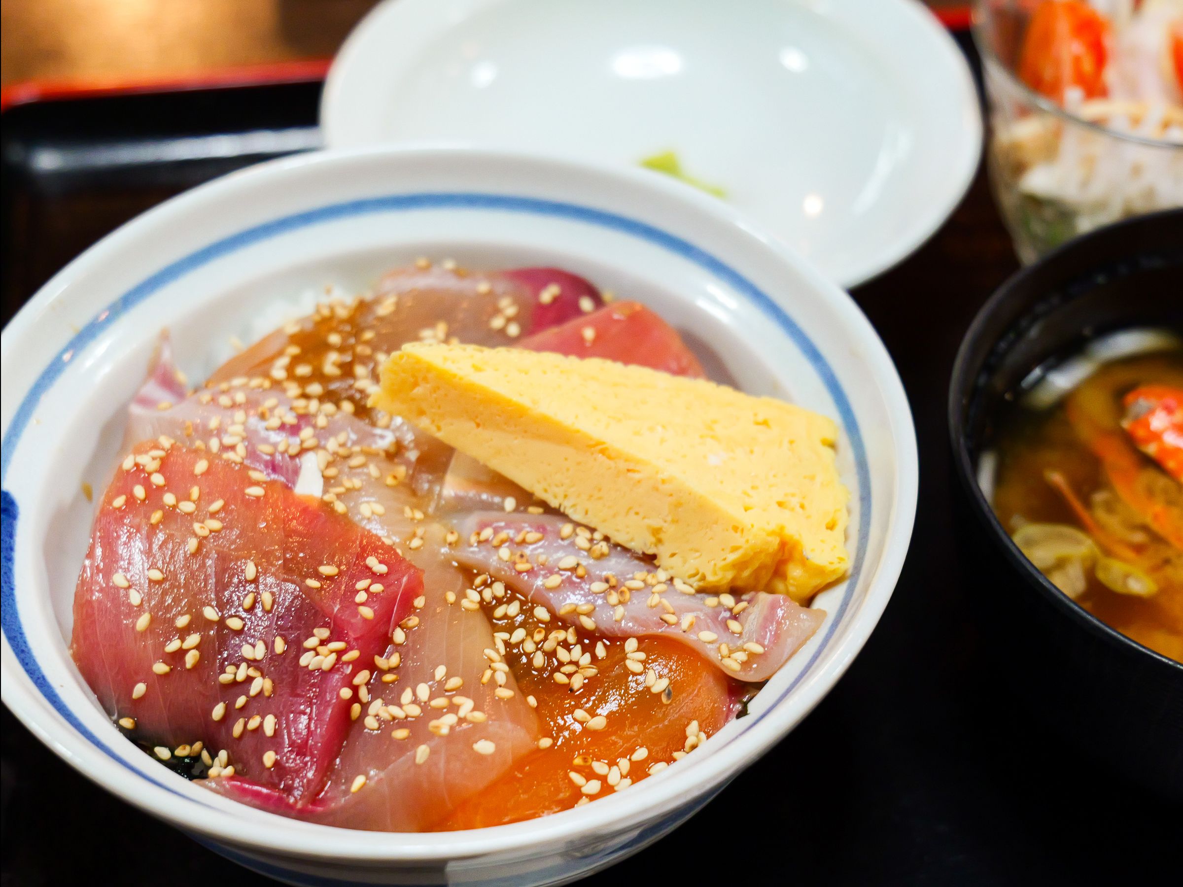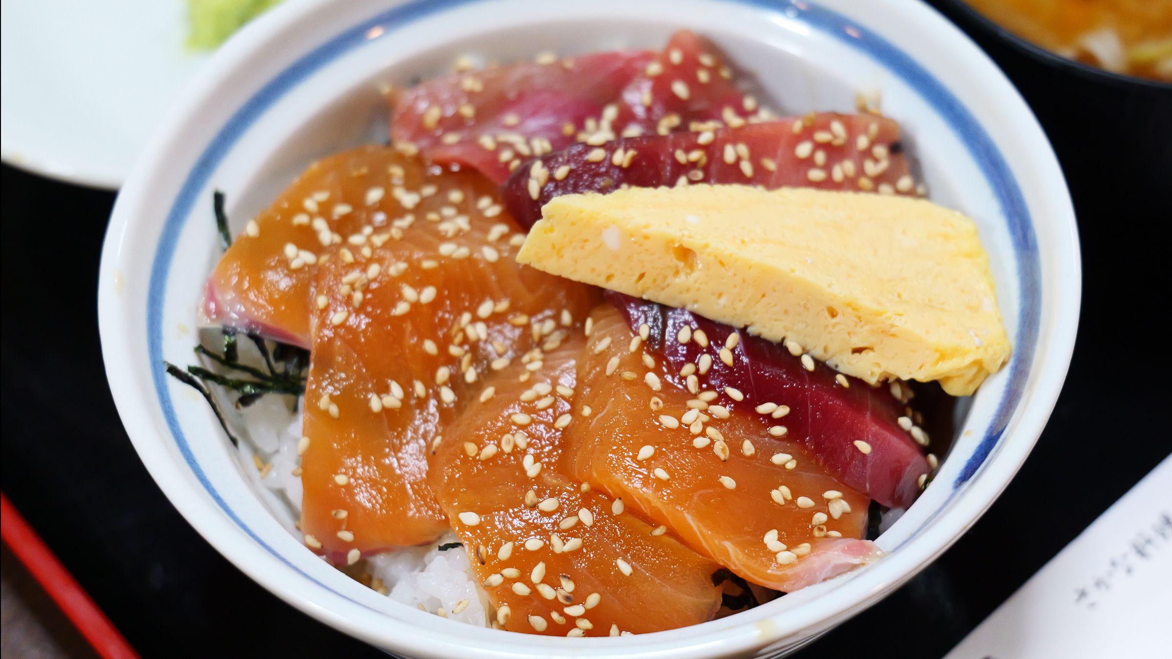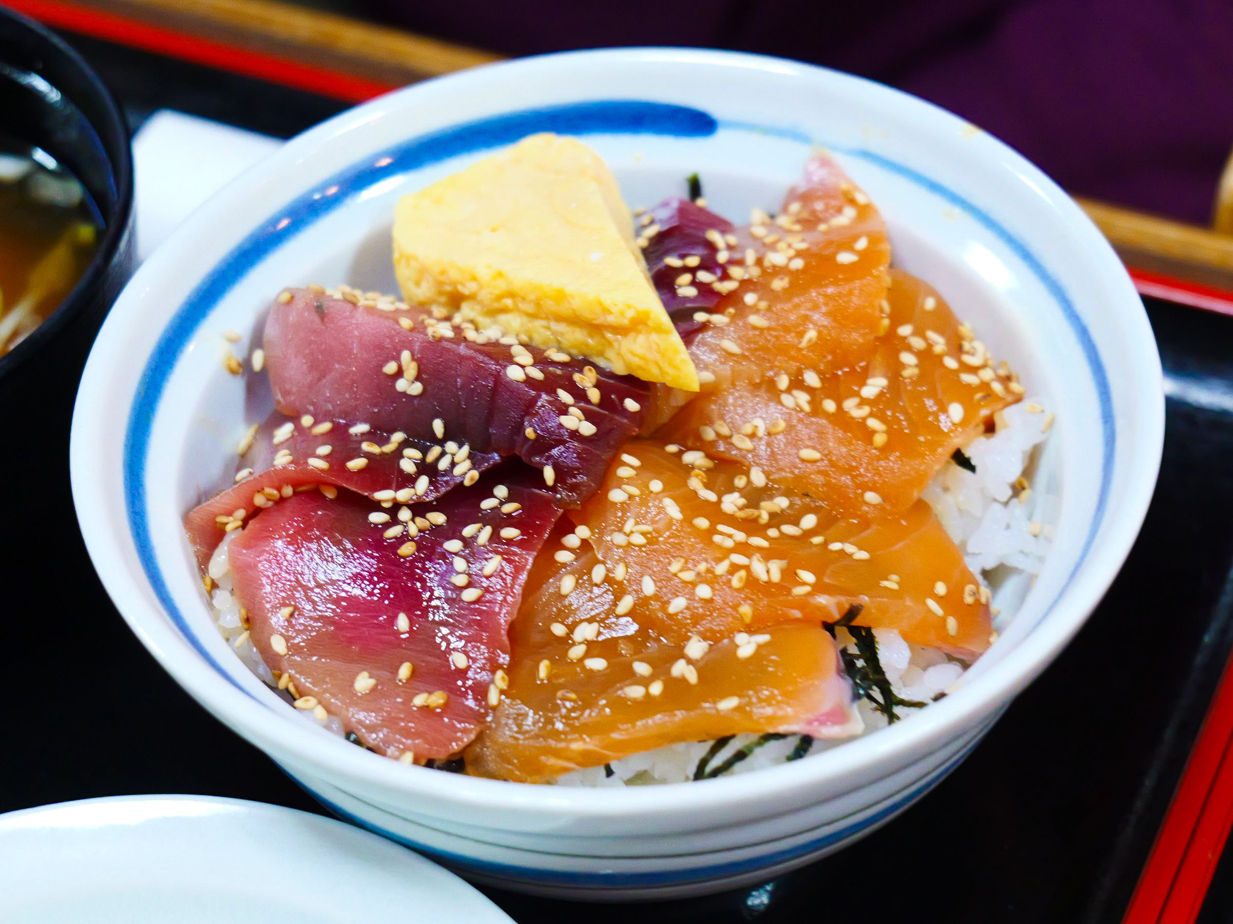 三浦生まれ、三浦育ちの2代目店主、松原和治(まつばら かずはる)さんが「地のものを使ったメニューを」と提供しているのが「二色丼」です。三崎のマグロ問屋から仕入れたマグロと、三浦サーモンの2種類をのせています。