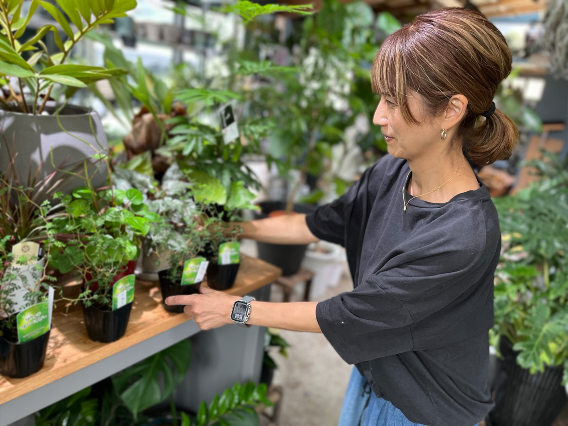店内には300種以上の観葉植物が美しく並びます。空間サイズや光の入り方を意識して配置され、自宅に置いた姿を自然と想像できる工夫をしているそうです。