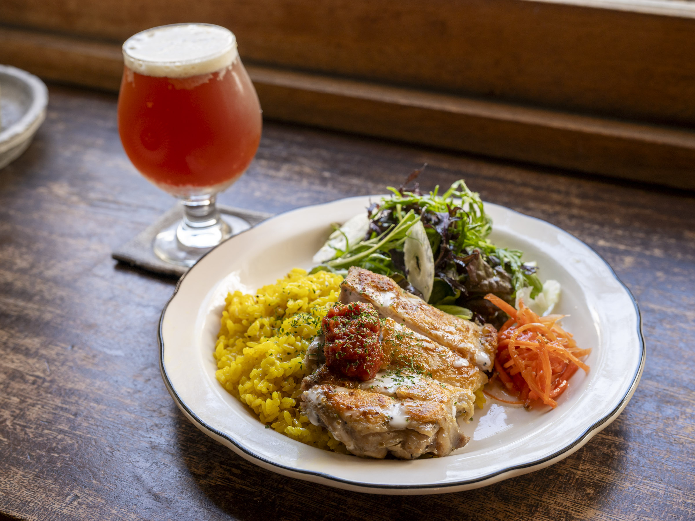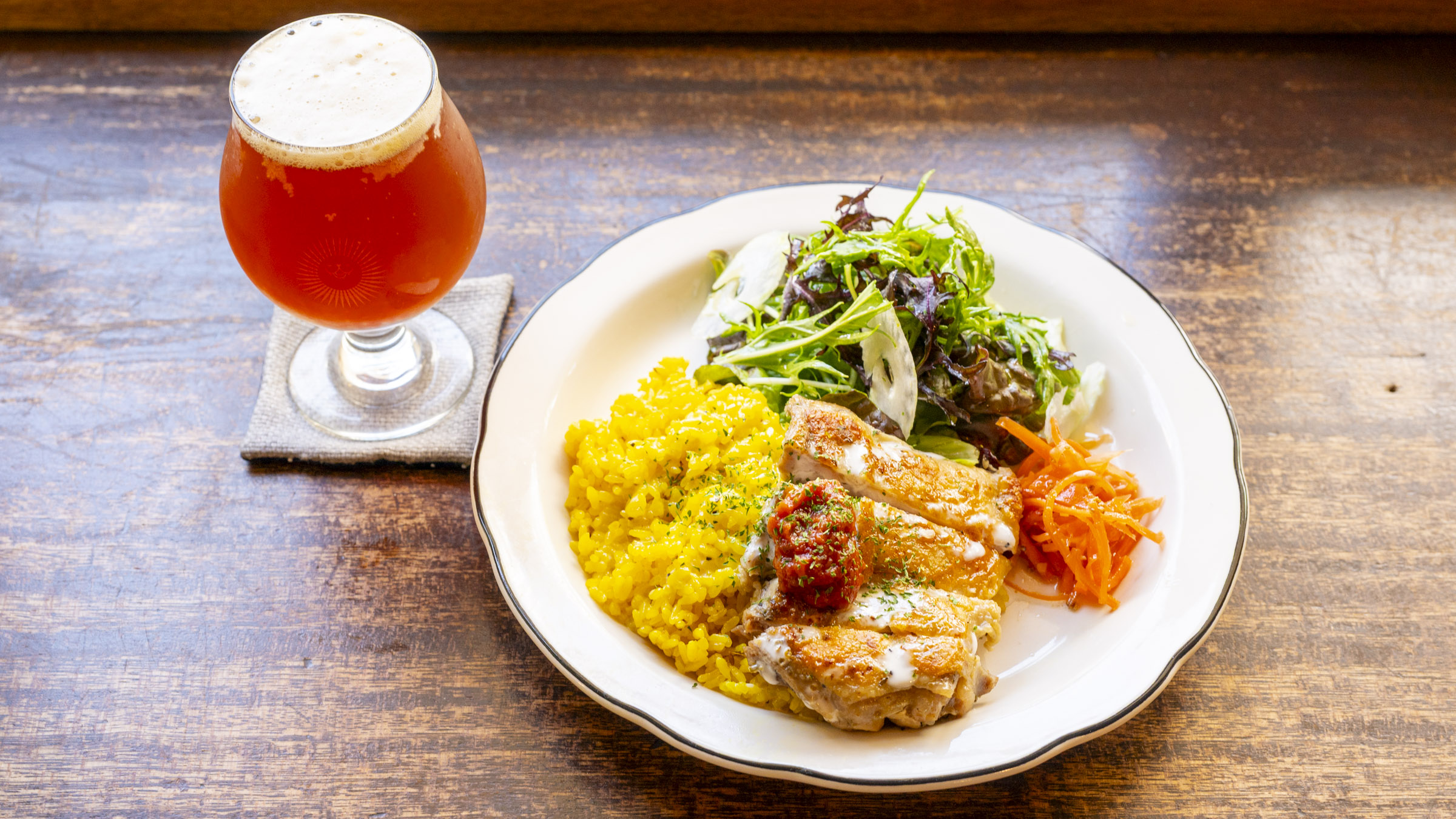 そもそもハラルカートは、豚肉などを使わないイスラム教のハラルフードを提供する屋台のこと。ニューヨークの屋台で人気のプレートをそのまま再現しました。香ばしく焼きあげたチキンとしっとりしたターメリックライスの組み合わせは異国情緒を称えながらも日本人の口にも合う味でした。ちなみにチキンは逗子の精肉店「鳥一」から仕入れたもの。