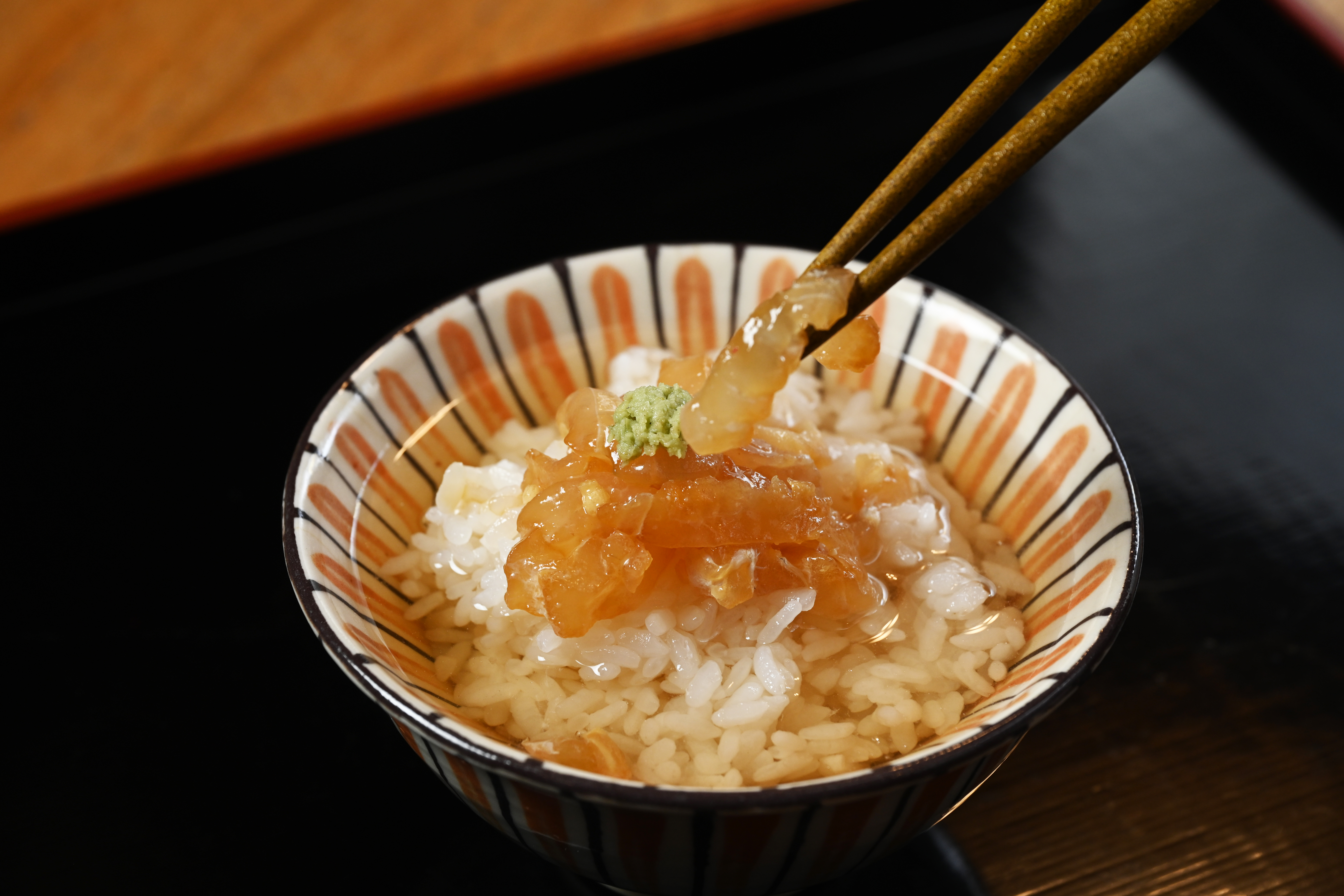 さっと食べられる手軽な食事を、手間暇かけて締めのごちそうに昇華させた「日影茶屋」の鯛茶漬け。森さんにおすすめの食べ方を教えていただきました。