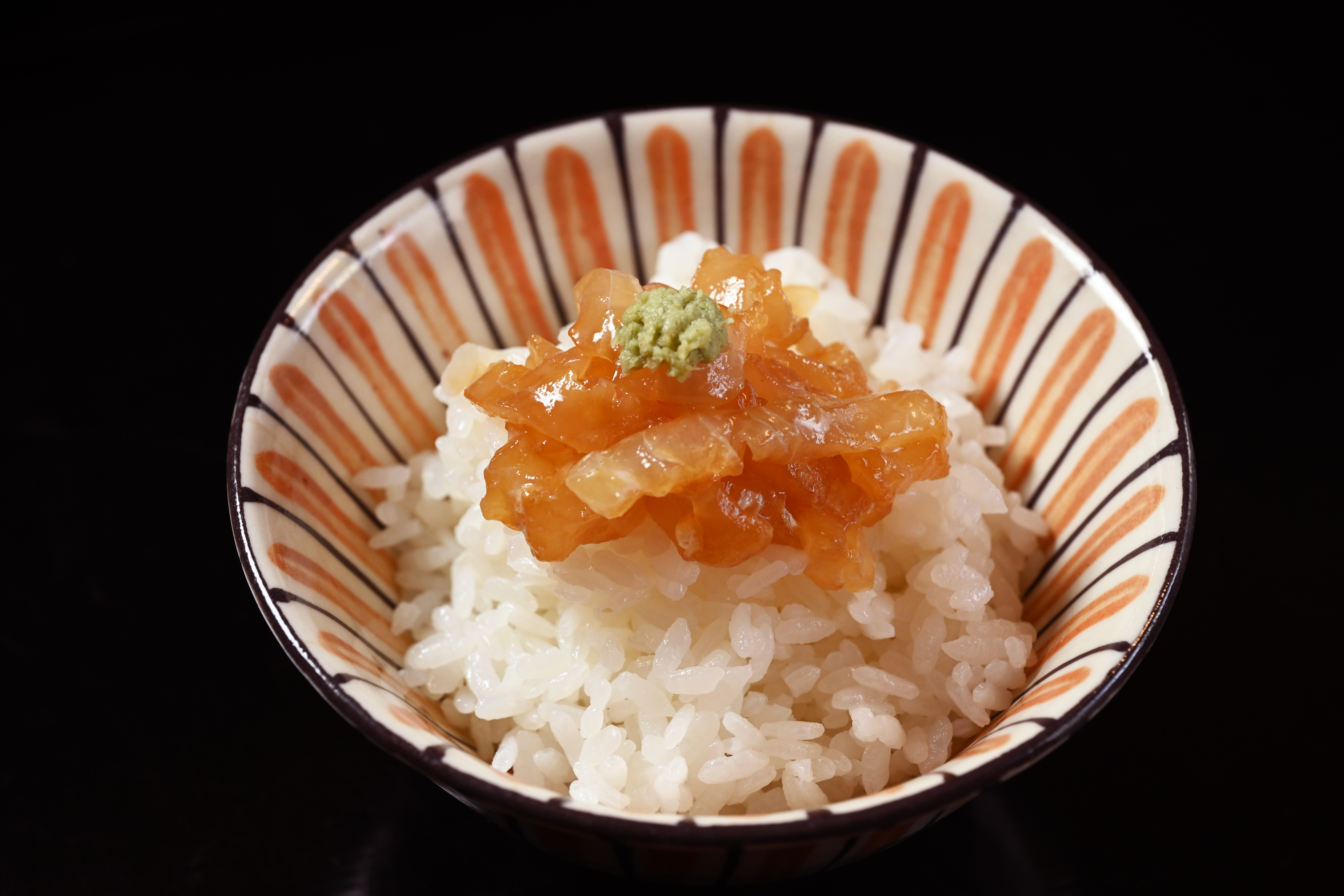 胡麻の香りと濃厚なうまみが白いごはんによく合い、あられの食感も楽しく、ほうじ茶をかけるとさらっと上品な味わいに変化。昼夜ともに「鯛茶膳」(昼5,500円、夜7,150円)の一品として味わうことができます。