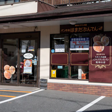駅前通りから少し歩いた住宅街に現れる「パン市場 はまだぶんてん」は、ソフトフランスパンの発祥の店として現在も多くのお客様で賑わいを見せています。