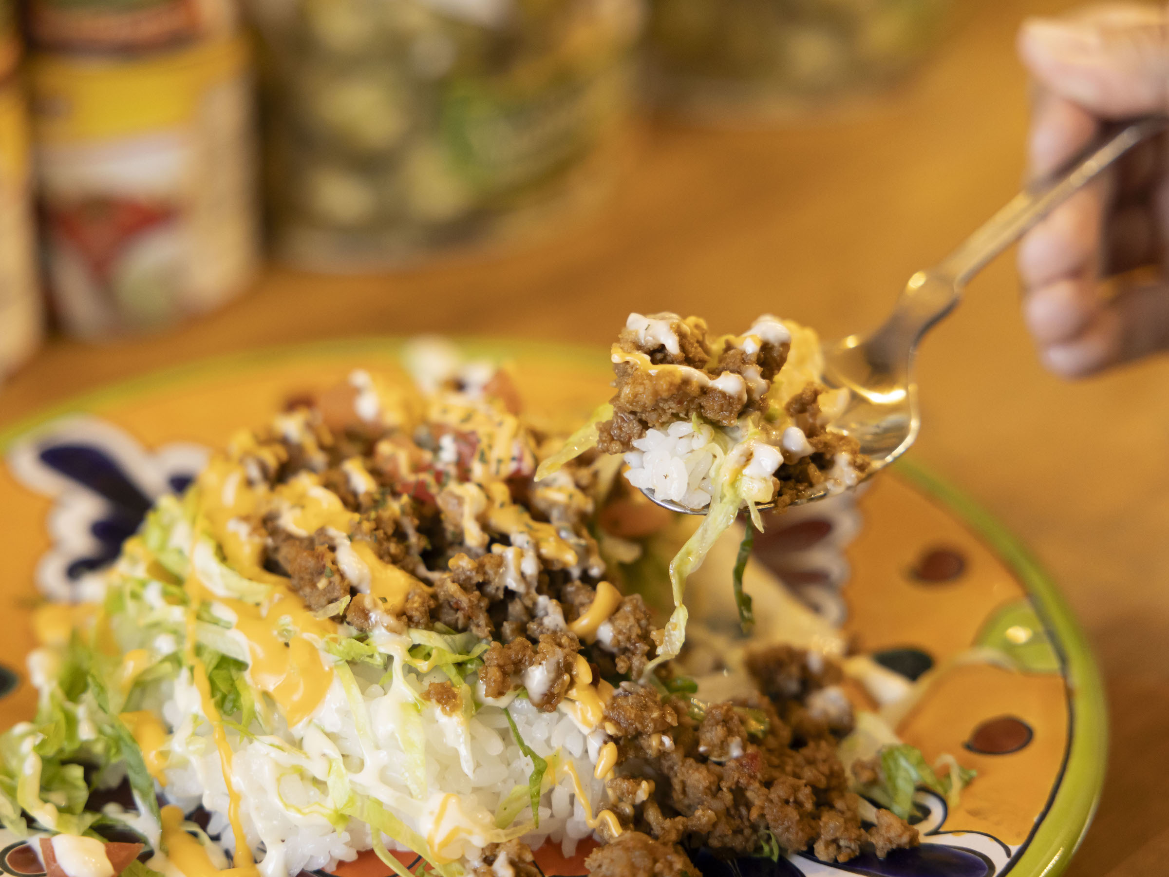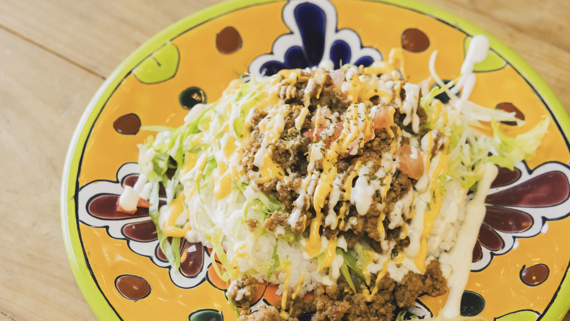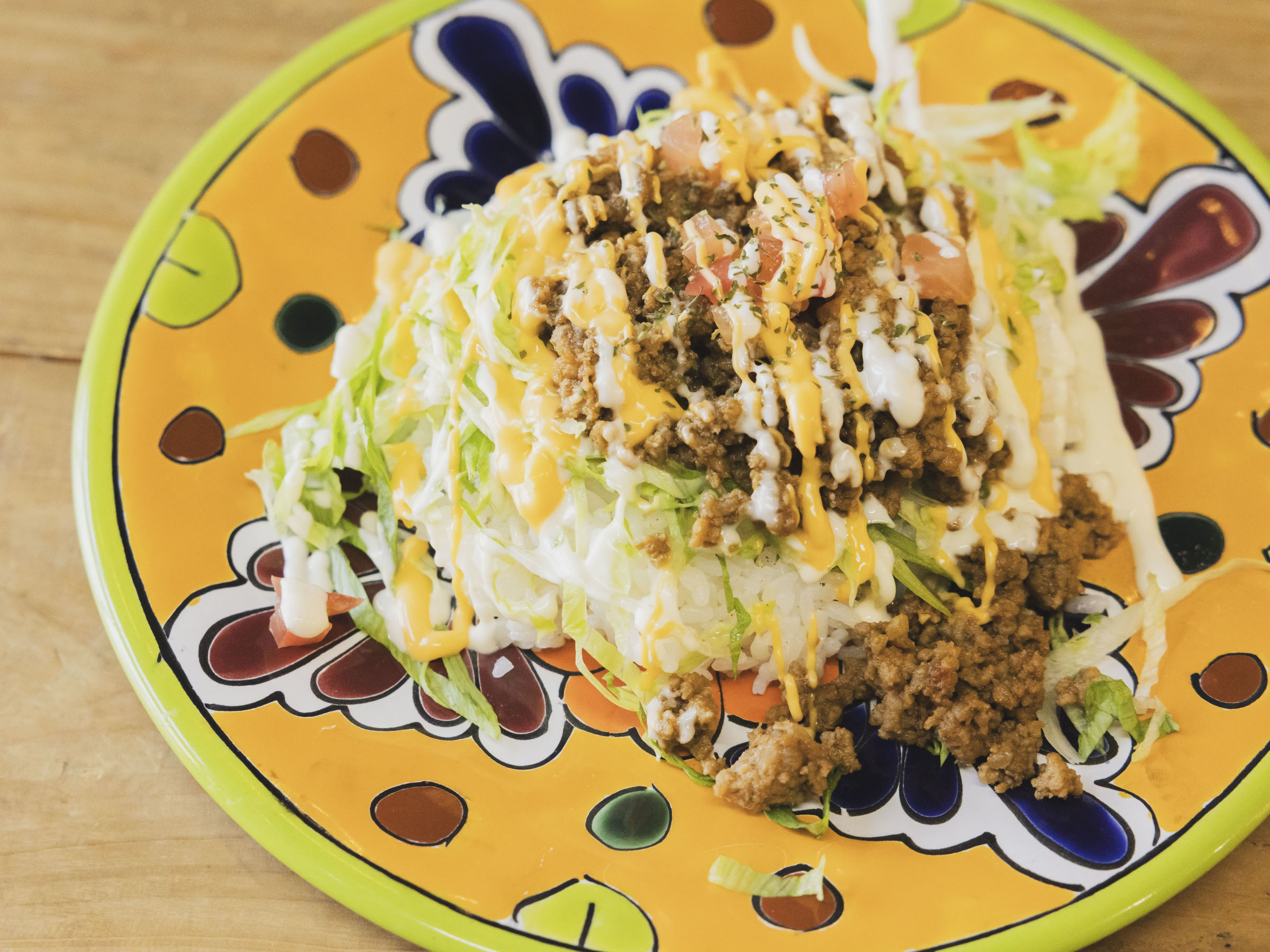 「タコミートにはクミンをはじめ、スパイスを独自に配合して、味に深みを持たせました。沖縄だとタコライスはスナック感覚ですが、うちではメインの一食として満足してもらえるように、お腹にたまるボリュームとパンチのある味わいで、満足感のある一皿にしています」