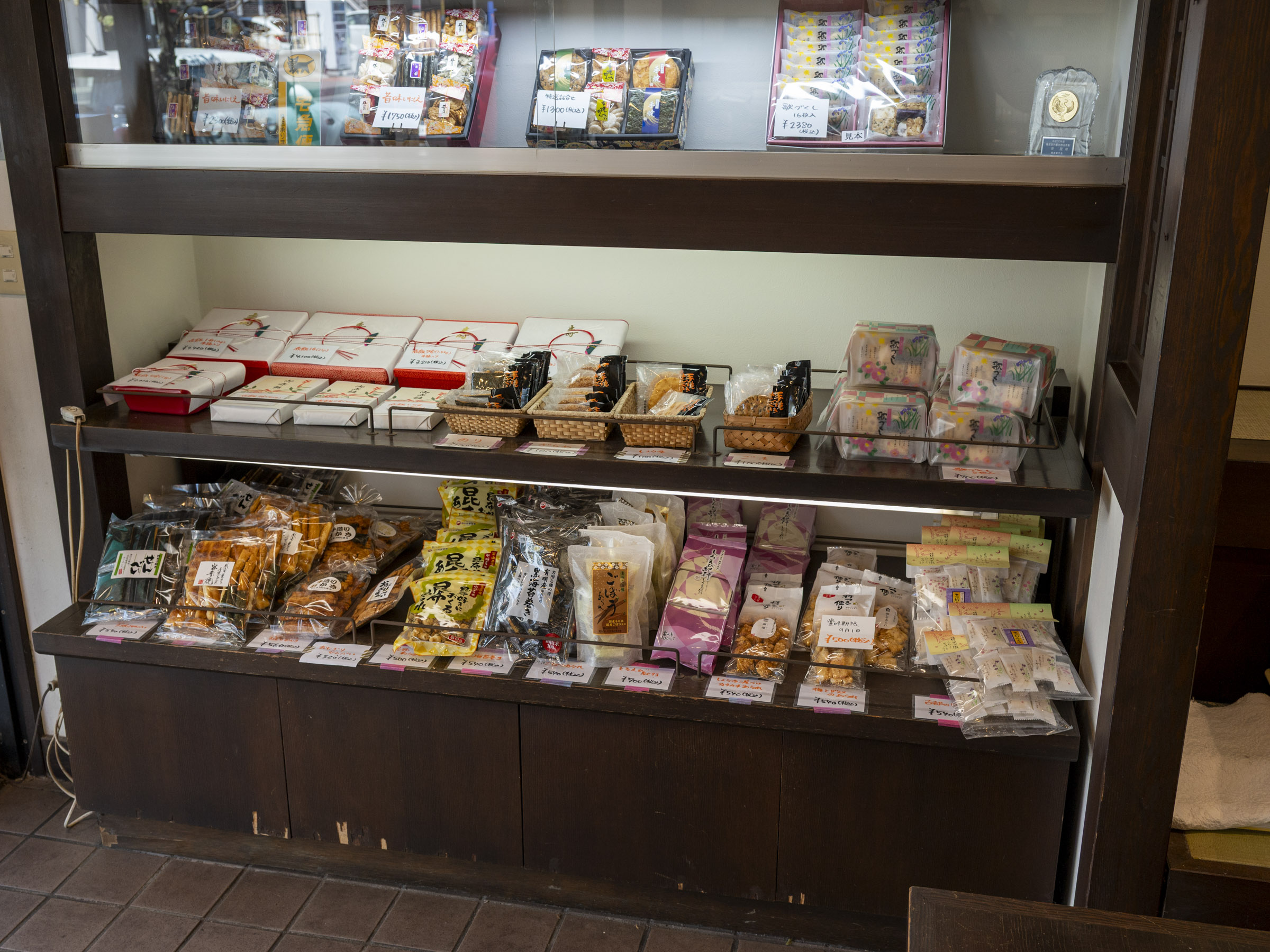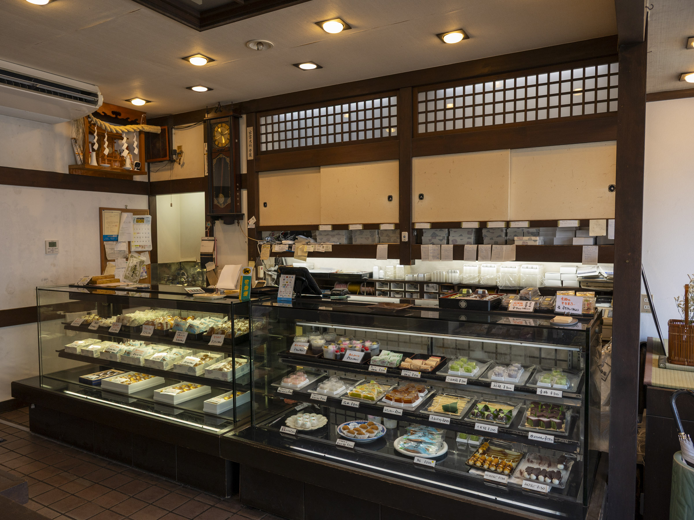 店内には定番の「すかどら」や「マドレーヌ」のほか、季節の和菓子が並ぶほか、おせんべいや、日によってはお赤飯も販売されています。